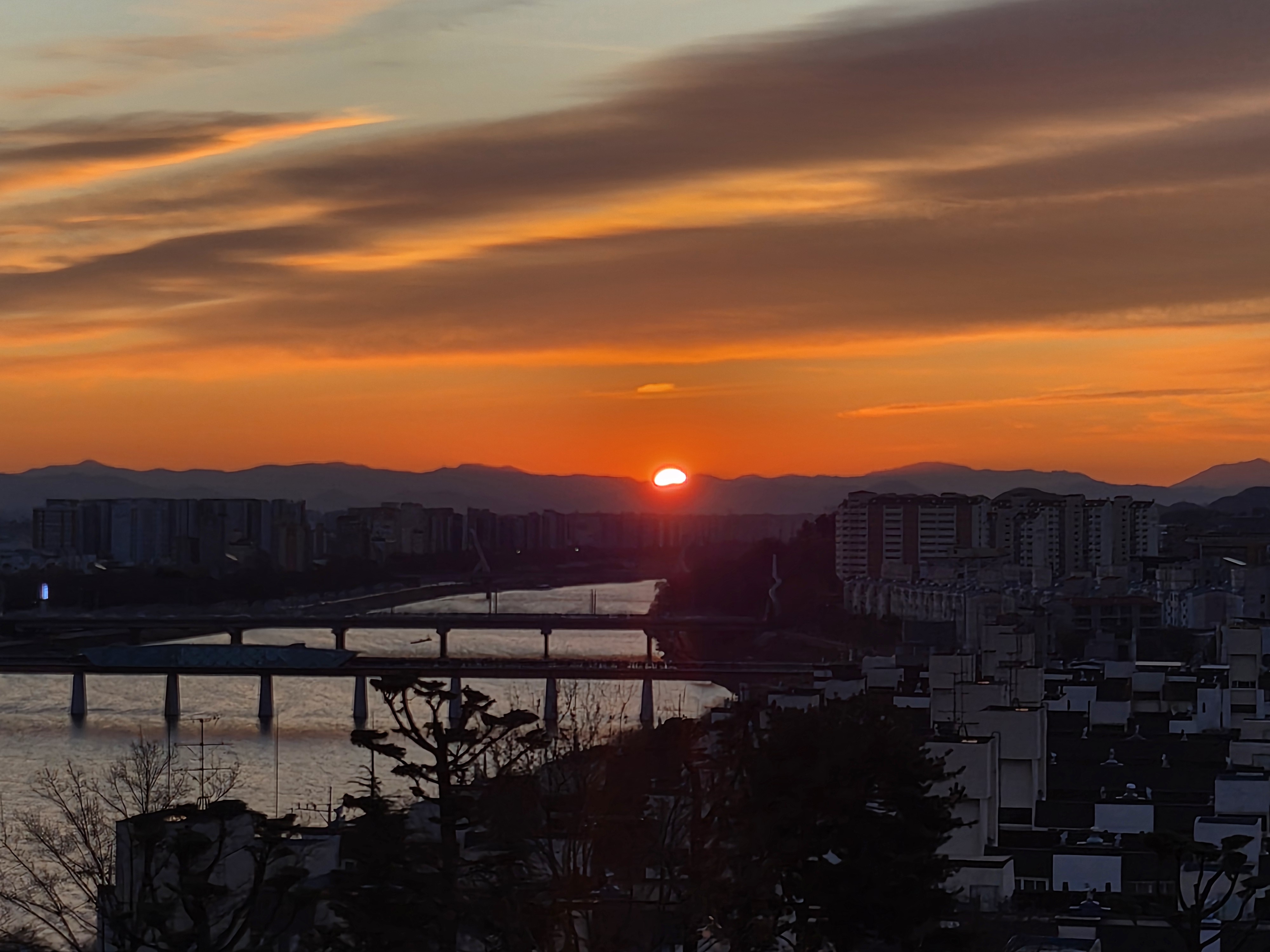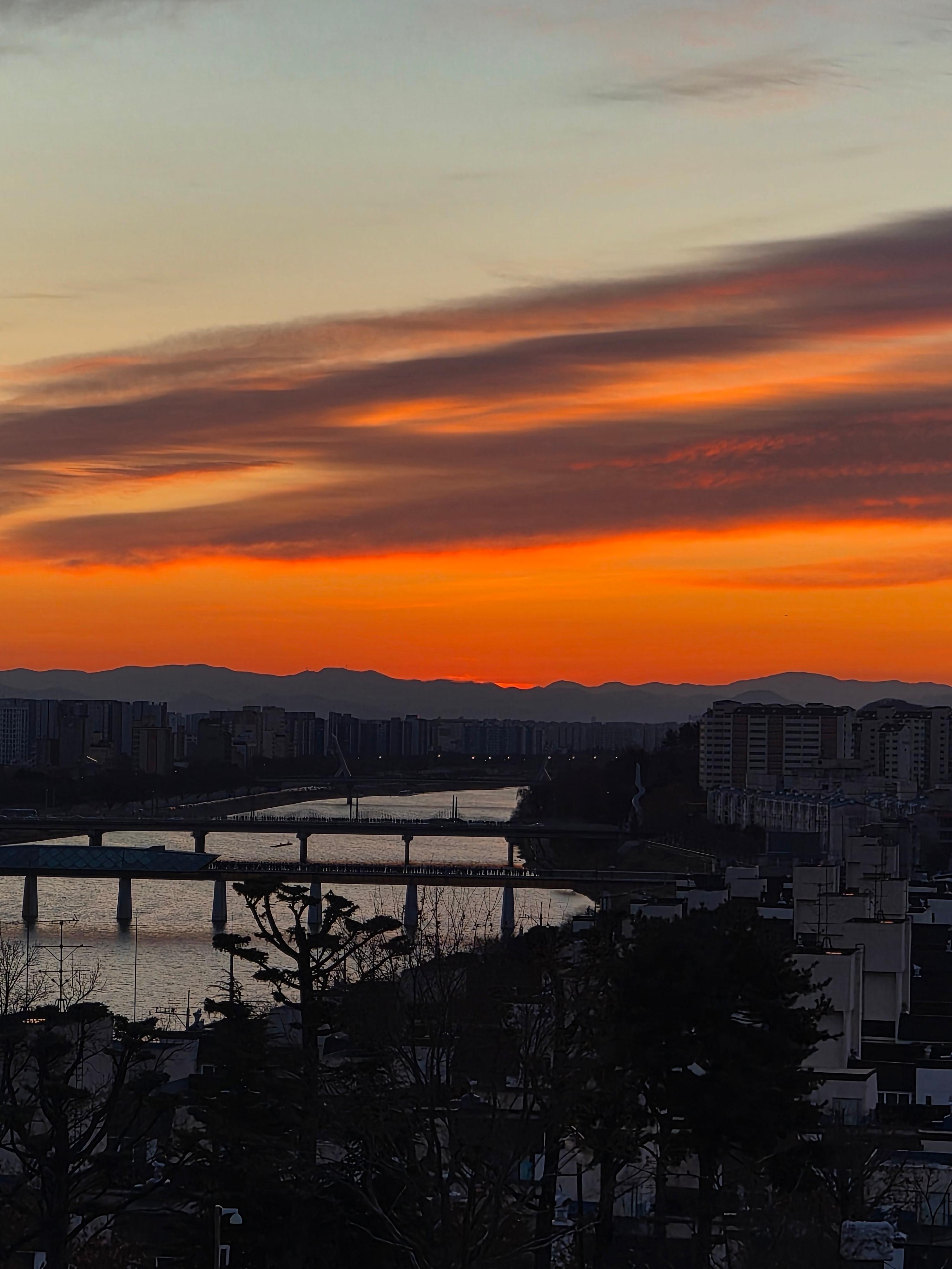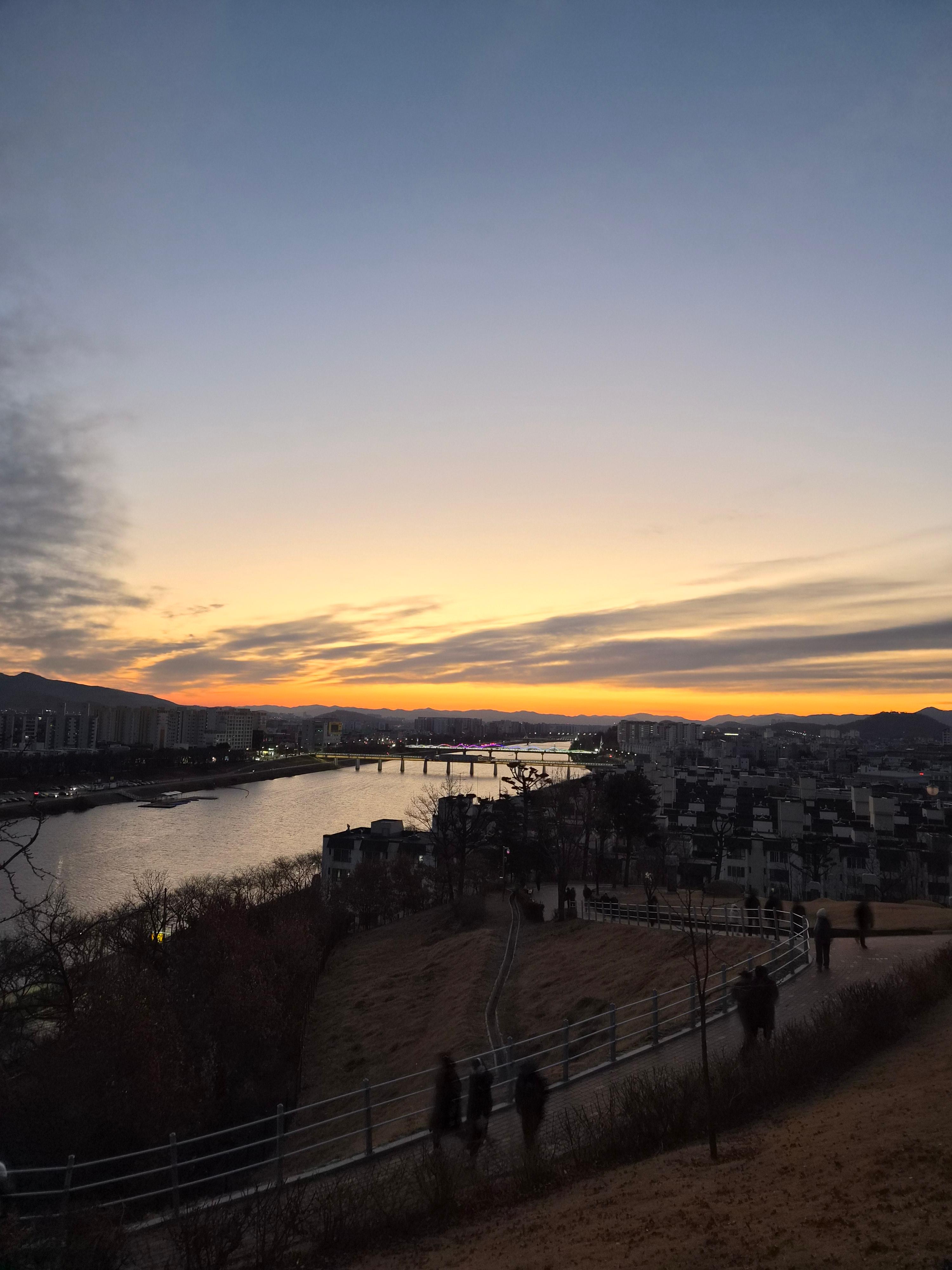 국립신암선열공원에서 보는 일출은 정면에서 보는 방향이라서 감상하기에 좋았던 것 같다. 다른 곳들 중에서는 약간 비스듬하게 봐야하는 곳들도 있는데...ㅎ 그리고 아래쪽에 금호강이랑 아양교, 해맞이다리 등 예쁜 다리들도 보이고 전체적으로 잘 볼 수 있었고 예뻤다.