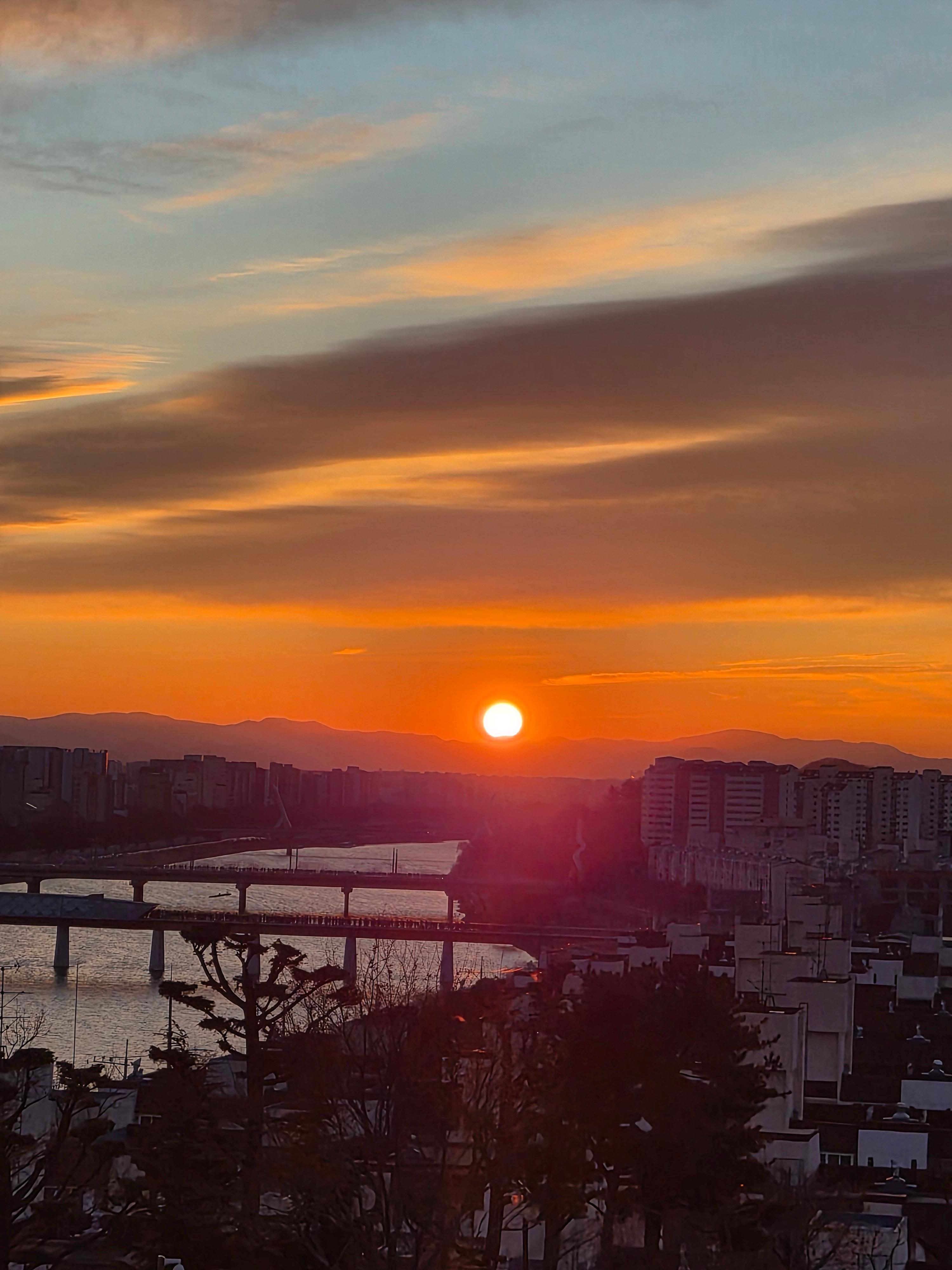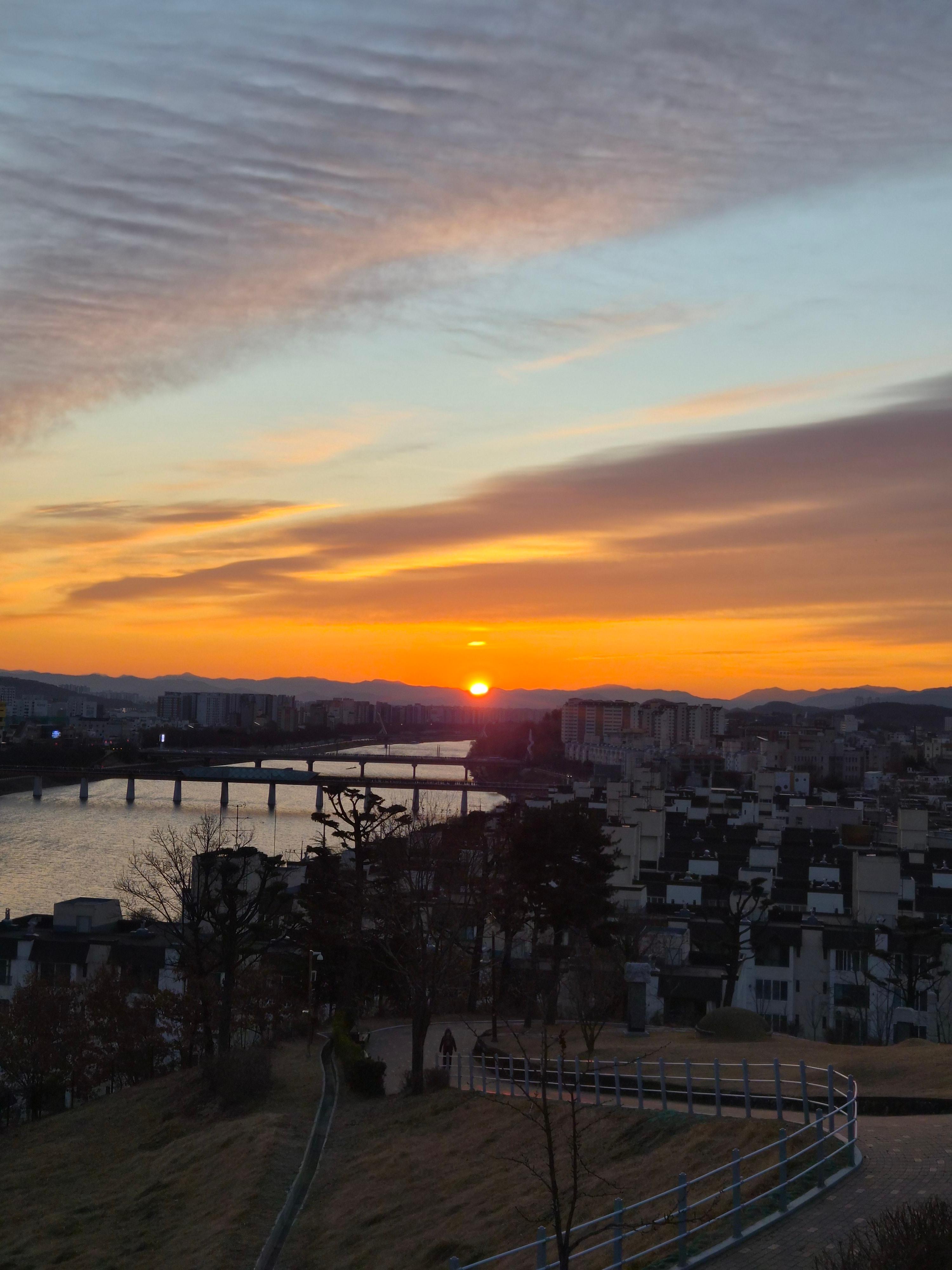 국립신암선열공원에서 보는 일출은 정면에서 보는 방향이라서 감상하기에 좋았던 것 같다. 다른 곳들 중에서는 약간 비스듬하게 봐야하는 곳들도 있는데...ㅎ 그리고 아래쪽에 금호강이랑 아양교, 해맞이다리 등 예쁜 다리들도 보이고 전체적으로 잘 볼 수 있었고 예뻤다.
