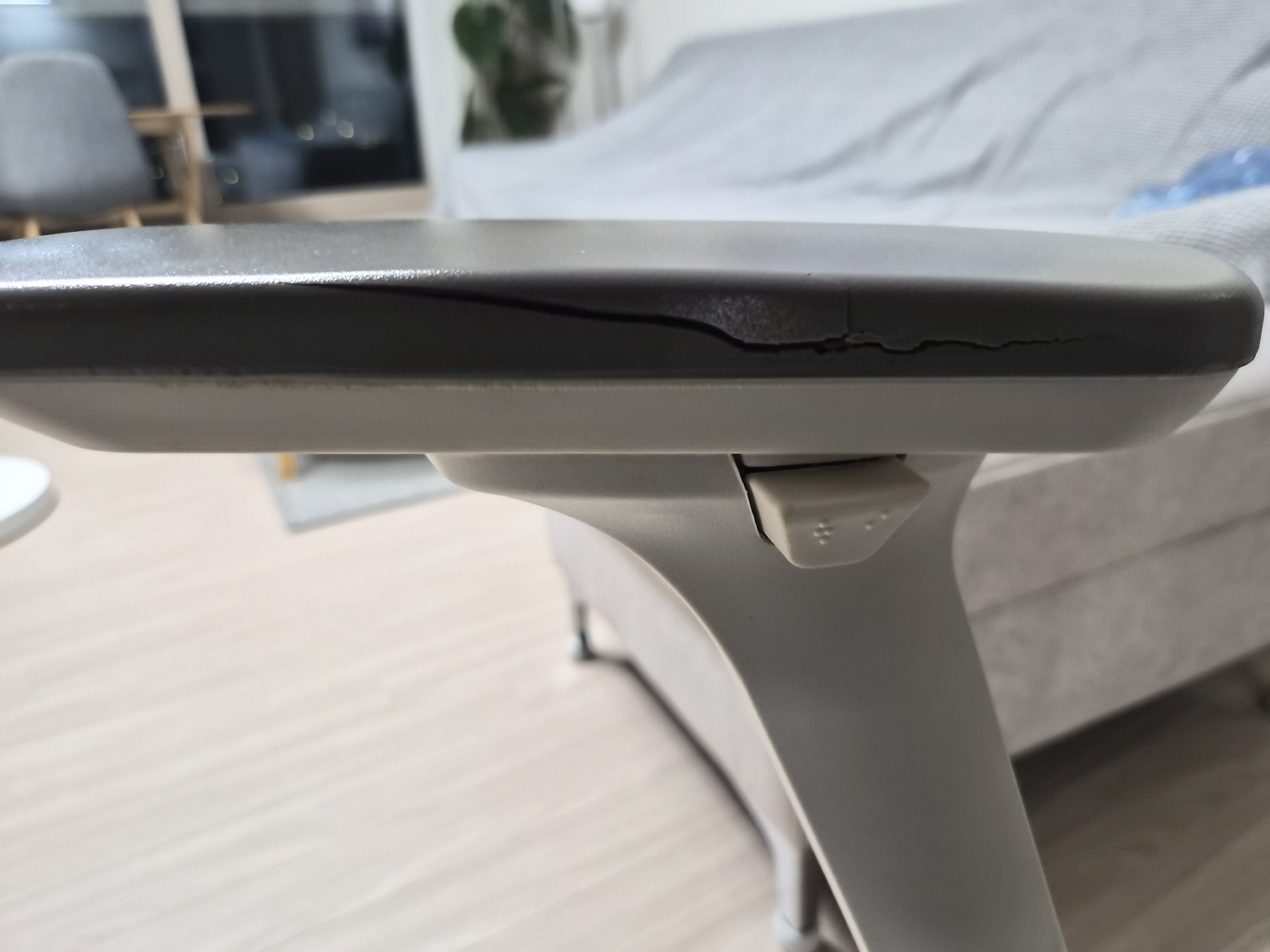 오른쪽 팔걸이 안쪽 옆면 부분이 처음에 살짝 터진 것처럼 되어있었는데 시간이 지나니까 계속 터져서 위에서 걸리적거릴 정도 되어서 그냥 바꾸기로 했다. 시디즈 홈페이지에서 제품 구매 - 택배 받고 - 셀프 교체까지 이전에 한 번 해봐서 그런지 이번에는 훨씬 더 쉬웠다. 1분 컷이었던 듯.