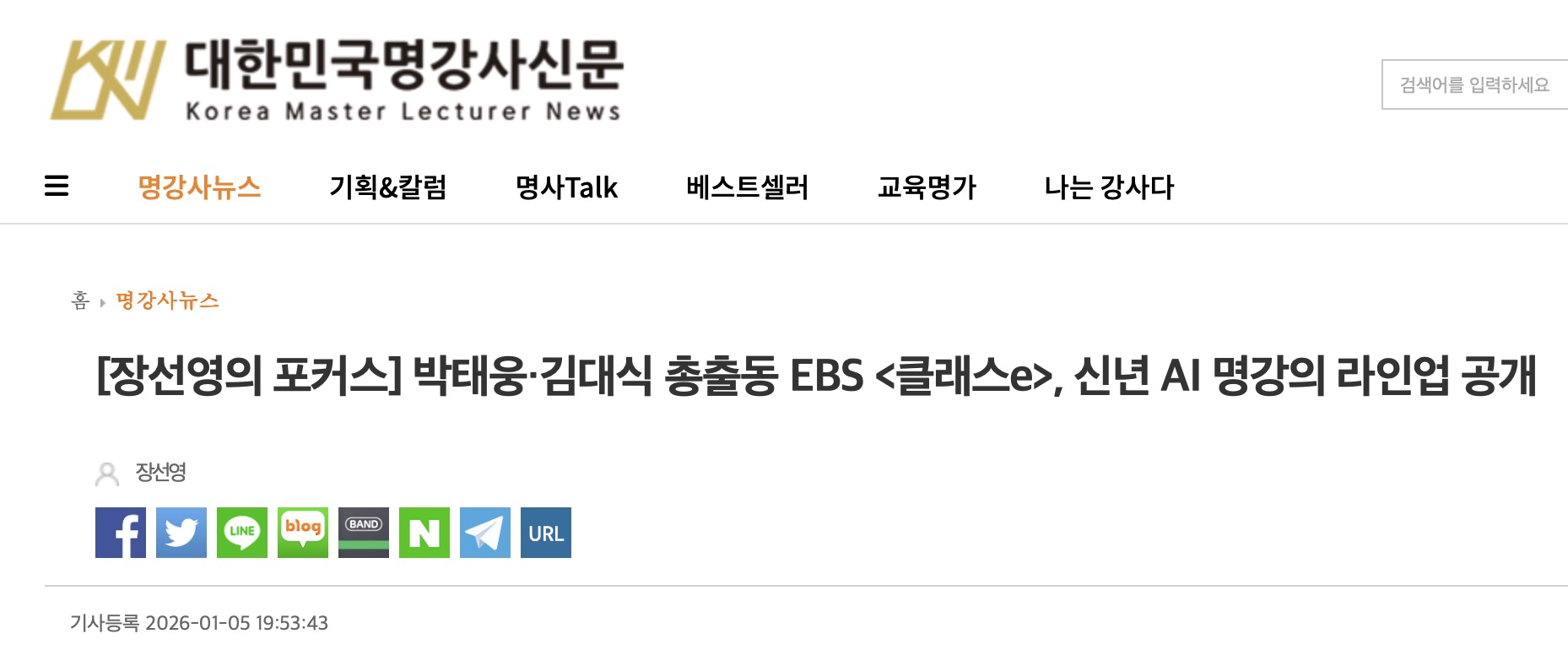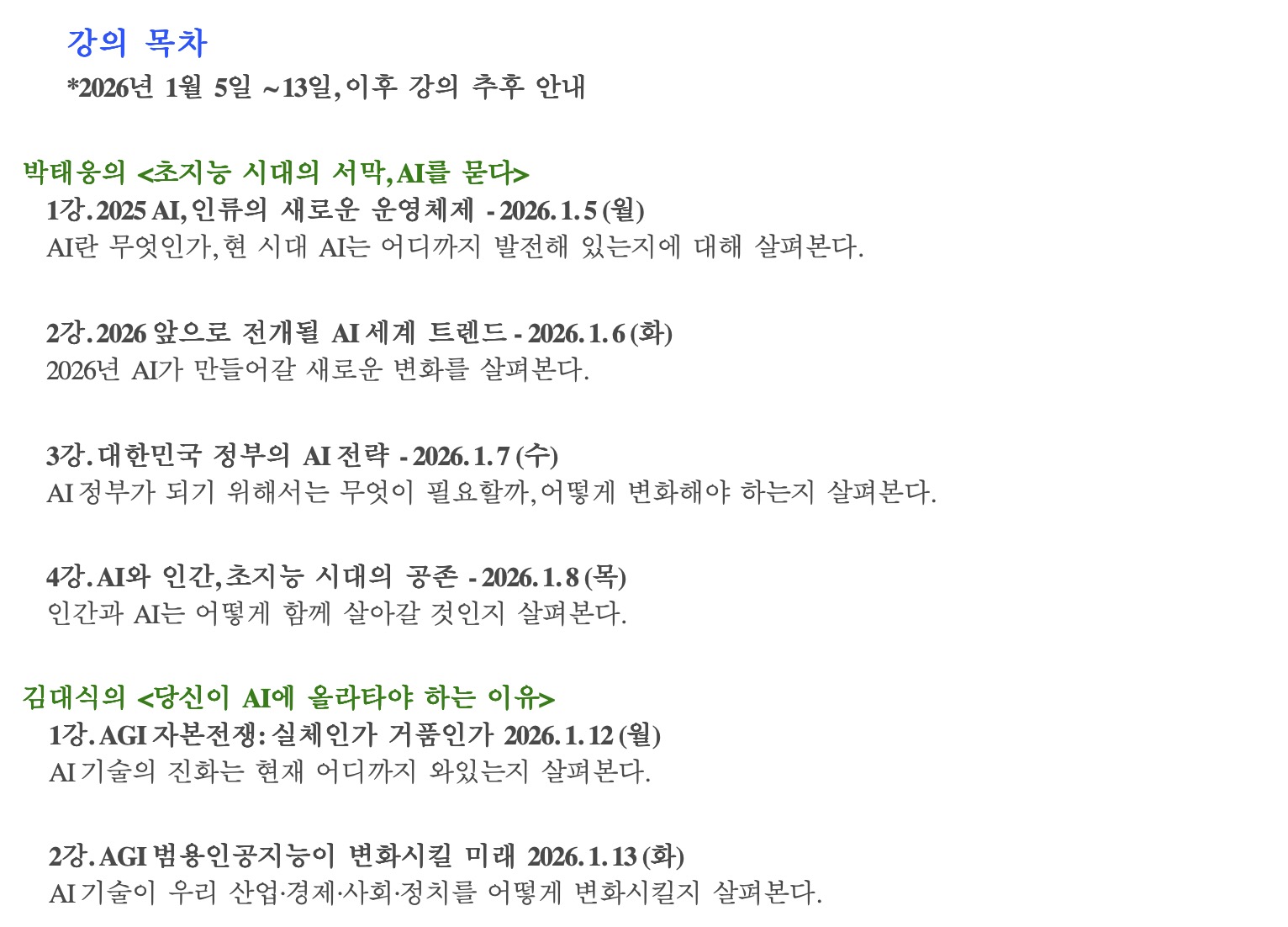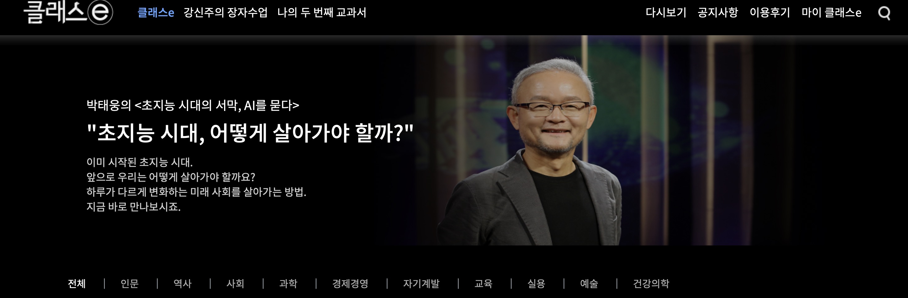 훌륭한 교육 콘텐츠가 많은 EBS 클래스e 프로그램에서 2026년 신년 특집으로 AI, 모든 것의 미래, 모든 이의 미래라는 주제로 방송이 시작되었습니다.