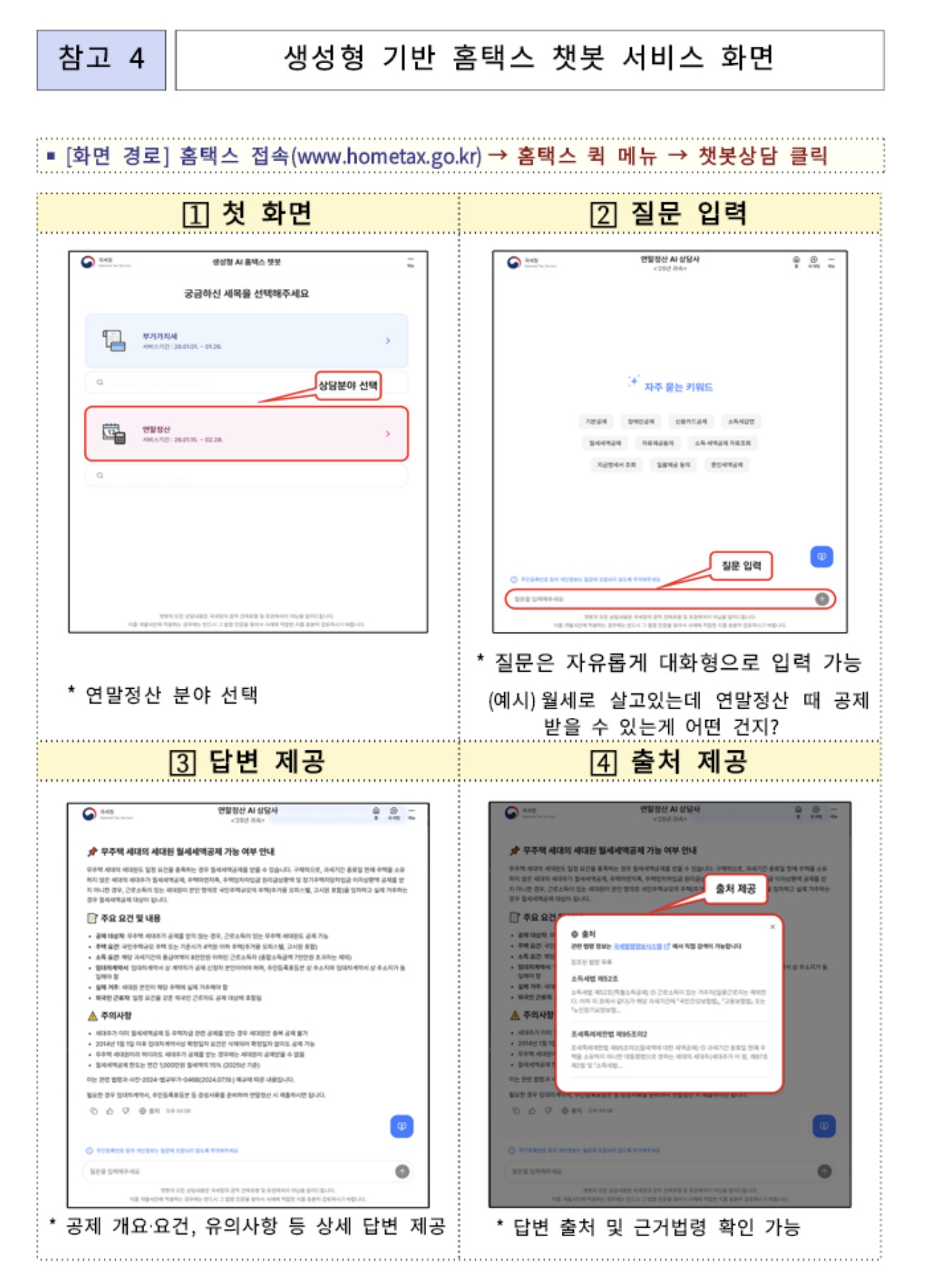 이번에 시범운영으로 새롭게 생성형 AI 기반 홈택스 챗봇 서비스가 생긴다고 한다. 그리고 AI 상담사도 연결이 가능하다고 한다.