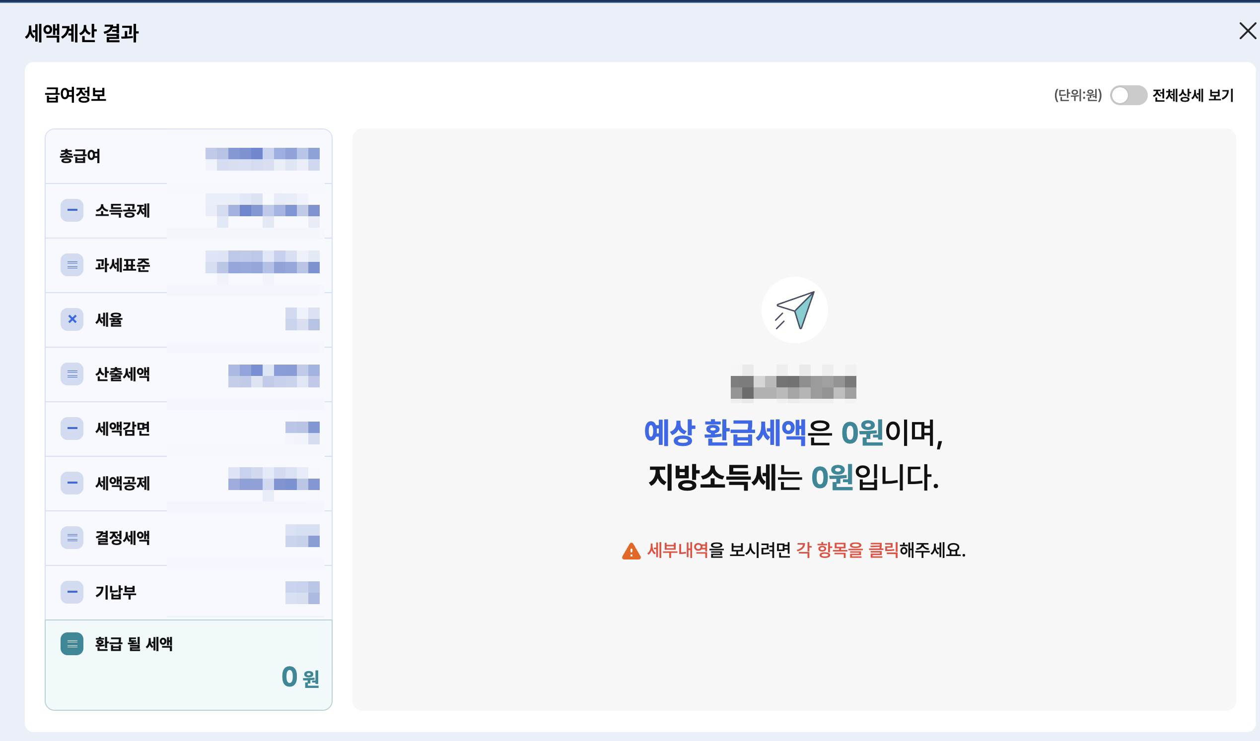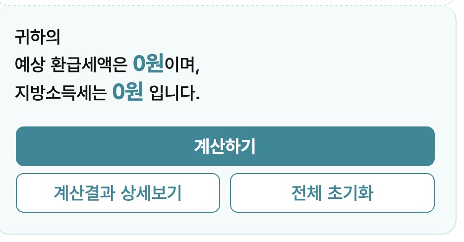 금액을 확인한 후 오른쪽 위에 있는 `예상세액 계산`을 클릭해서 페이지가 넘어가면 결정세액이 얼마인지 미리 볼 수 있다.