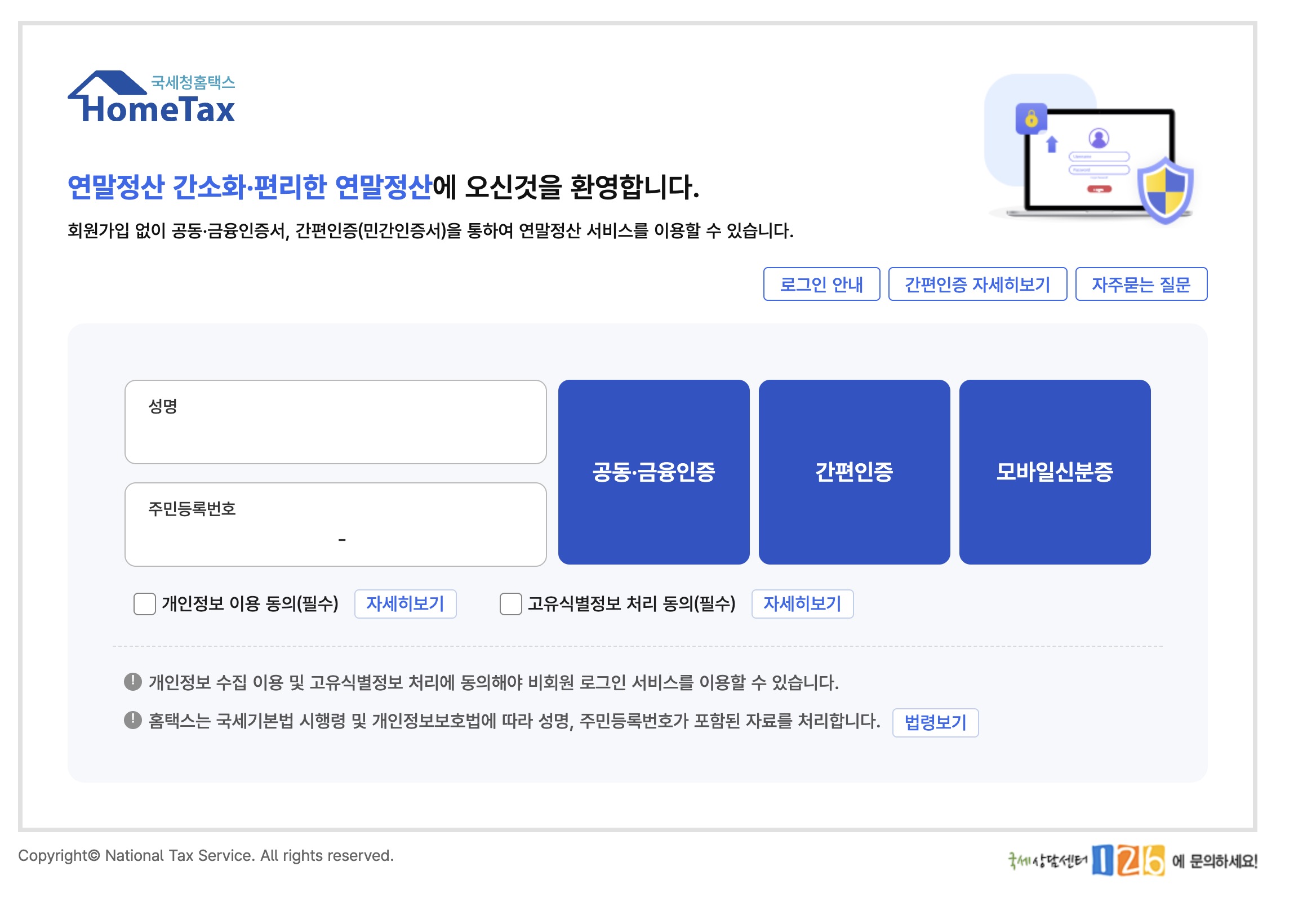 - 편리한 연말정산(연말정산간소화 자료)를 통해 자료 조회