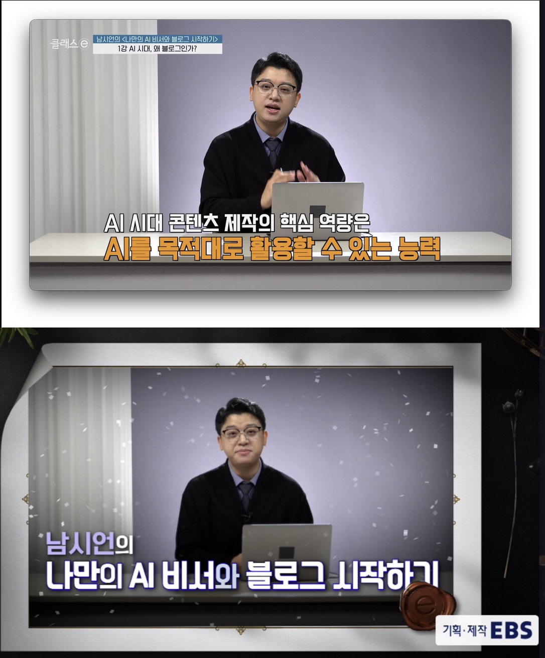 제가 출연했던 EBS 클래스e 신년특집 "AI 모든것의 미래, 모든이의 미래" 방송이 다음주 월~목까지 나간다고 합니다. 2026년 1월 26일 월요일부터 1월 29일 목요일까지입니다.