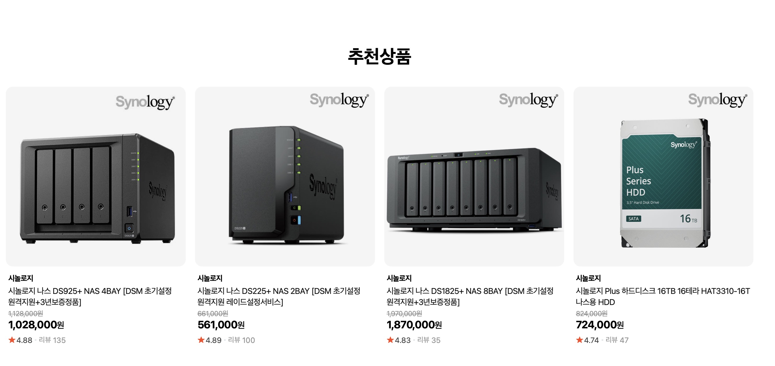 나스를 새로 사려고 가격을 알아보았다. 왜케 비싸노...ㅋㅋㅋㅋ 지금 4bay 쓰는데 4bat 그대로 사려면 최소 100만원 들어간다. 오마갓.