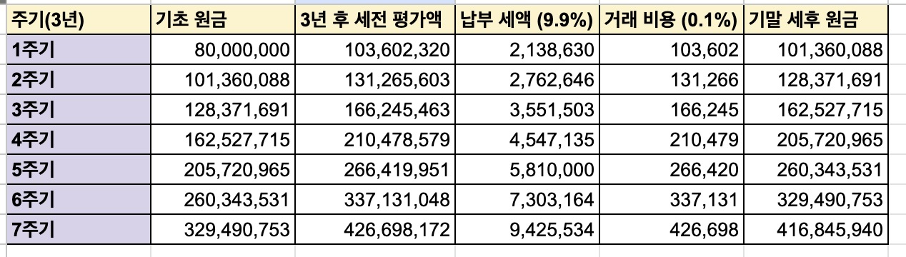 - 3년마다 수익금에 대해 9.9% 세금을 내야한다. 장기적으로는 원금이 줄어든다.