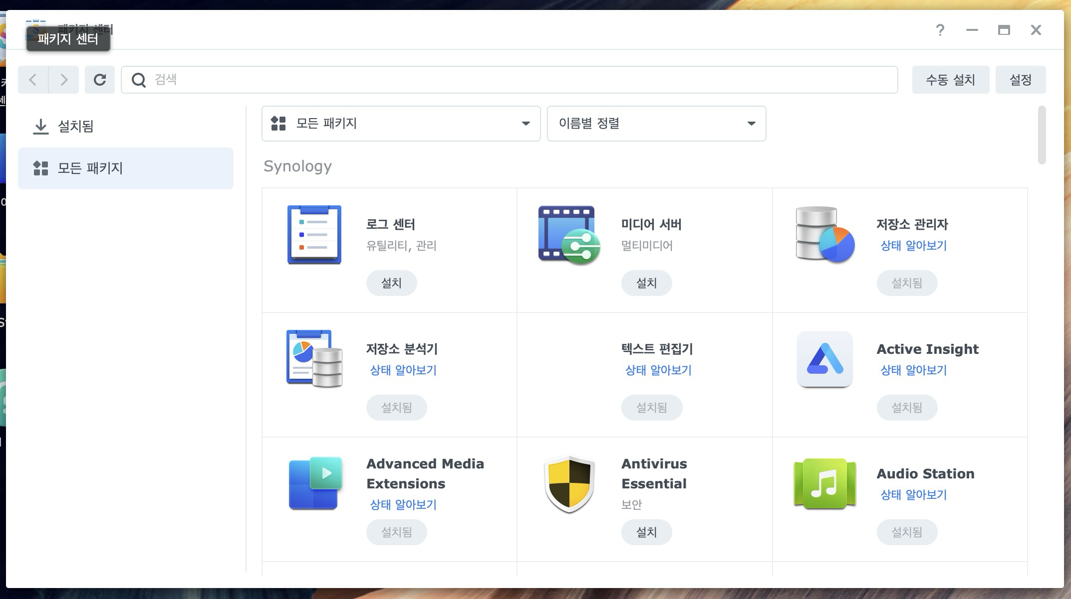 DSM에서 패키지 센터 들어가보니까 이것저것 새로운 앱들이 있다. 필요한것만 설치해서 쓸려고함. 예전에는 처음할 땐 궁금해서 이것저것 다 해보고 했었는데 나에겐 거의 필요없는 것들이 많았다.