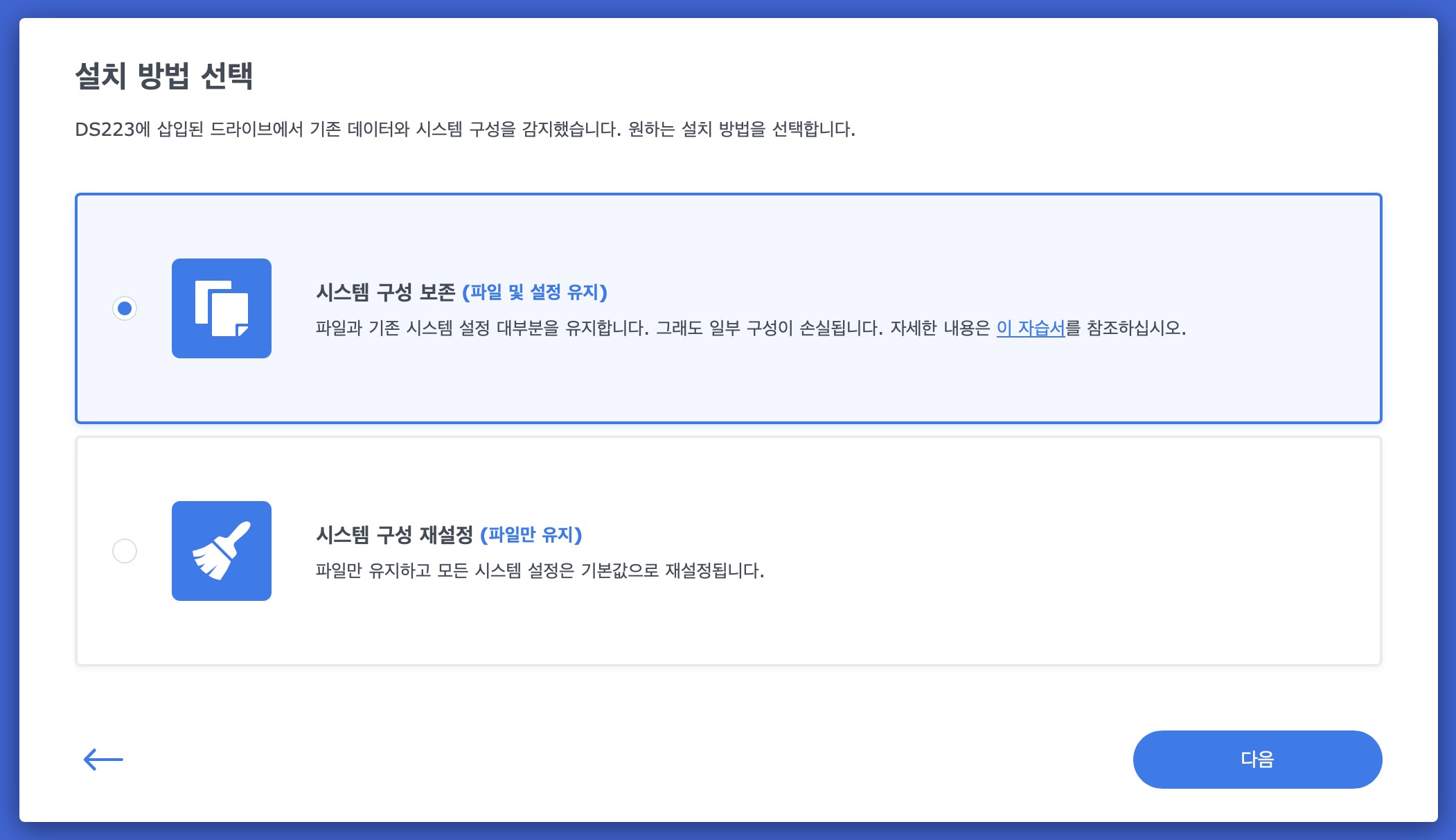 `시스템 구성 보존`으로 클릭하였다.