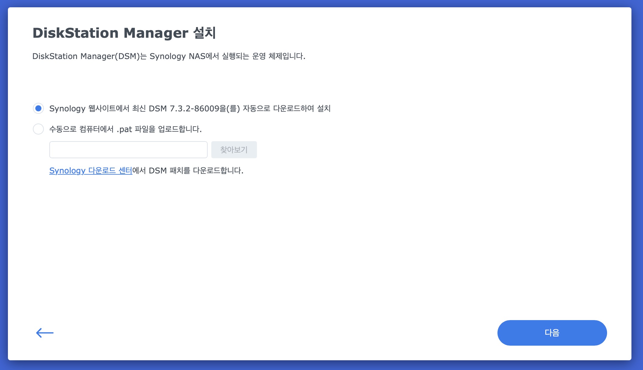 DSM은 최신버전 자동 다운로드 후 설치로 진행