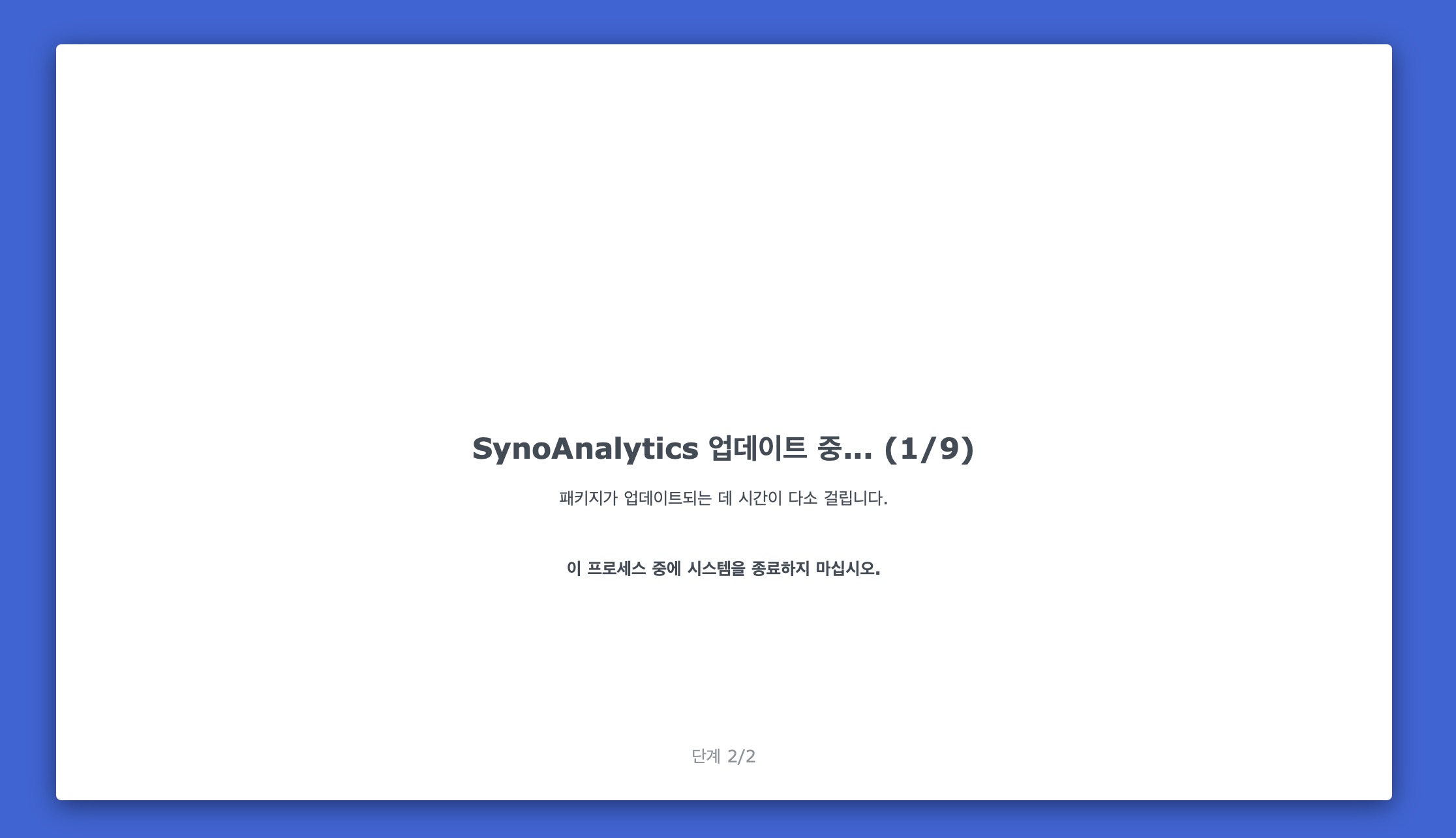 DS223 다시 시작 중... 이때 몇 번 시놀로지 나스가 꺼졌다가 켜지고 하는데 처음엔 10분 떠 있어서 10분 기다릴 수 있었는데 몇 분만에 완료되었다.