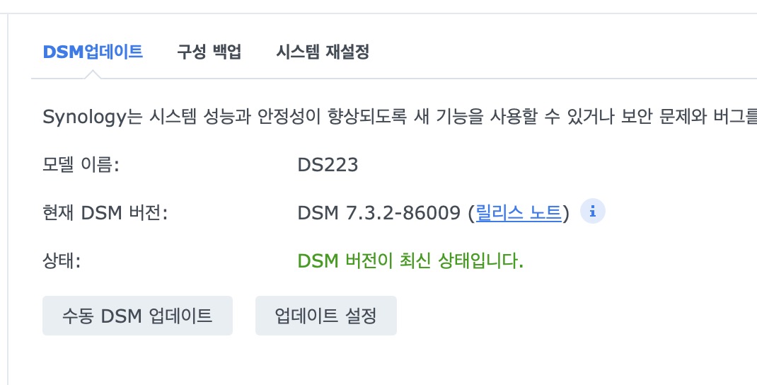 DSM 버전 확인.