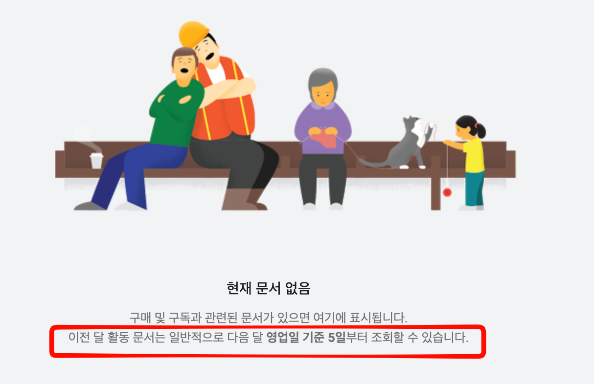 결제가 되었으니 `명세서 및 세금 증빙 보기`를 클릭해본다.