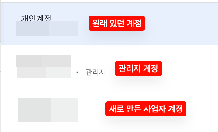 게속해서 계좌 유형이 `회사명`으로 되어있는지를 확인해야한다. 근데 웃긴게 여기도 회사명이 회사이름이 들어가는게 아니라 사업자 계정 자체의 계좌 유형이 `회사명`이다. 그러니까 저 회사명이라는 단어를 못바꾼다...ㅋㅋ 이건 좀 이해하기 어려웠다.