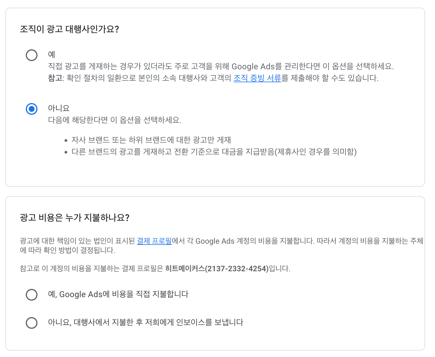 구글 애즈 사업자 계정 생성 완료.