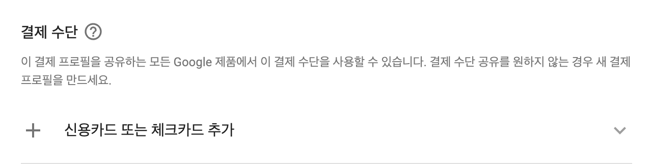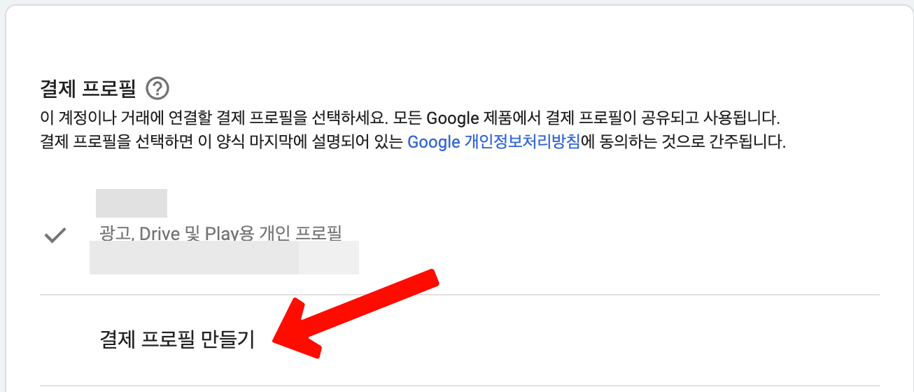 이전에 구글 애즈 관리자 계정을 만들면서 알게 되었는데 결제 프로필이 없으면 설정을 해야하고, 이거 설정도 또 은근 복잡했다. 아래쪽에서 `결제 프로필 만들기` 클릭한다.