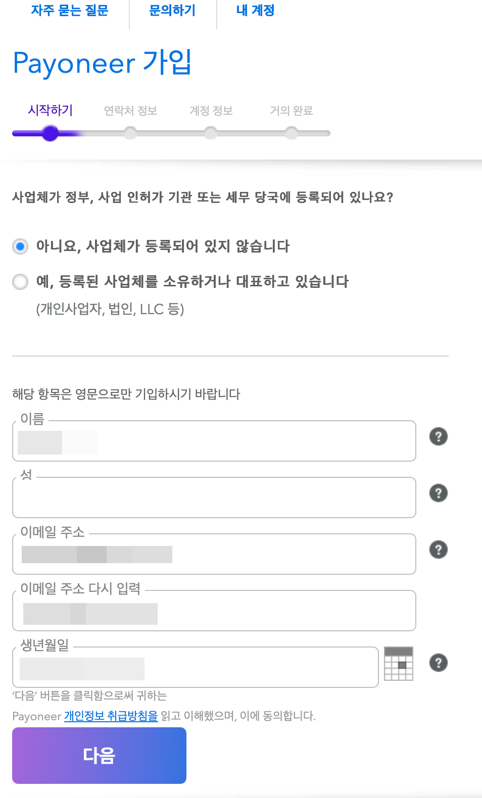 페이오니아(Payoneer) 계정 만들고 계좌 정보 설정하기