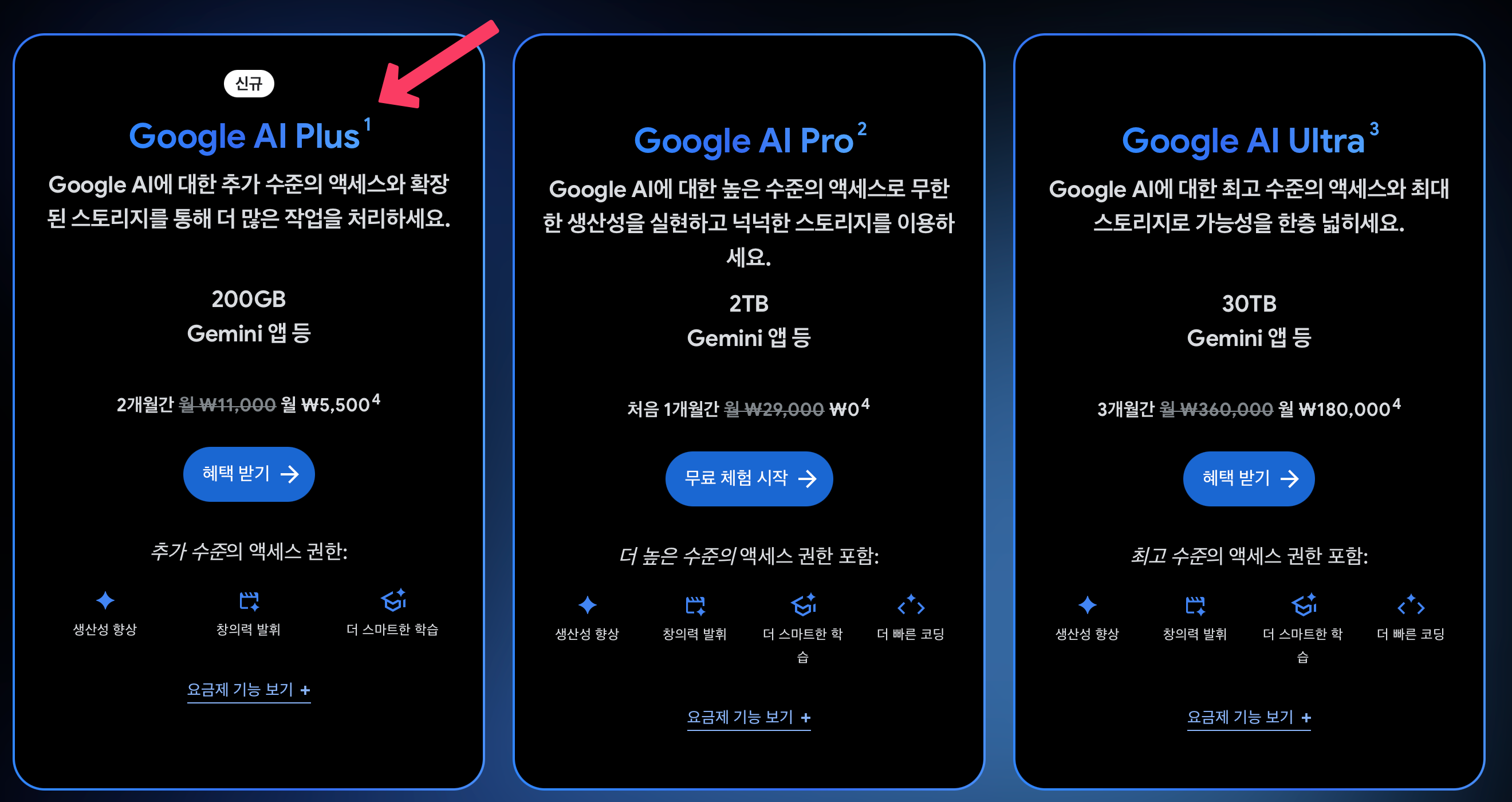 구글 AI Plus 요금제가 새로 나왔다. 가격은 월 11,000원 수준으로 Pro 요금제 대비 절반보다 조금 더 저렴한 가격이다. 약 40% 정도 가격인 것 같다. 차이점이 그렇게까지 크지 않아서 내 입장에서는 Pro를 구독하는것보다 Plus를 구독해서 보조 역할로 쓰는게 조금 더 적절하다는 판단이 있었다.