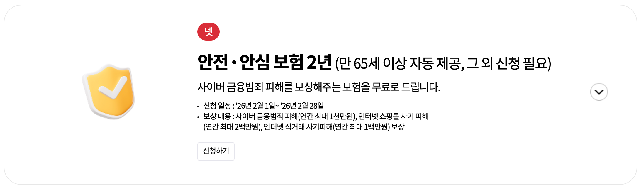 안심보험부터 등록해준다. 피싱이나 해킹, 인터넷 쇼핑몰 사기, 중고거래 사기 등에 대한 보험이라고 한다.