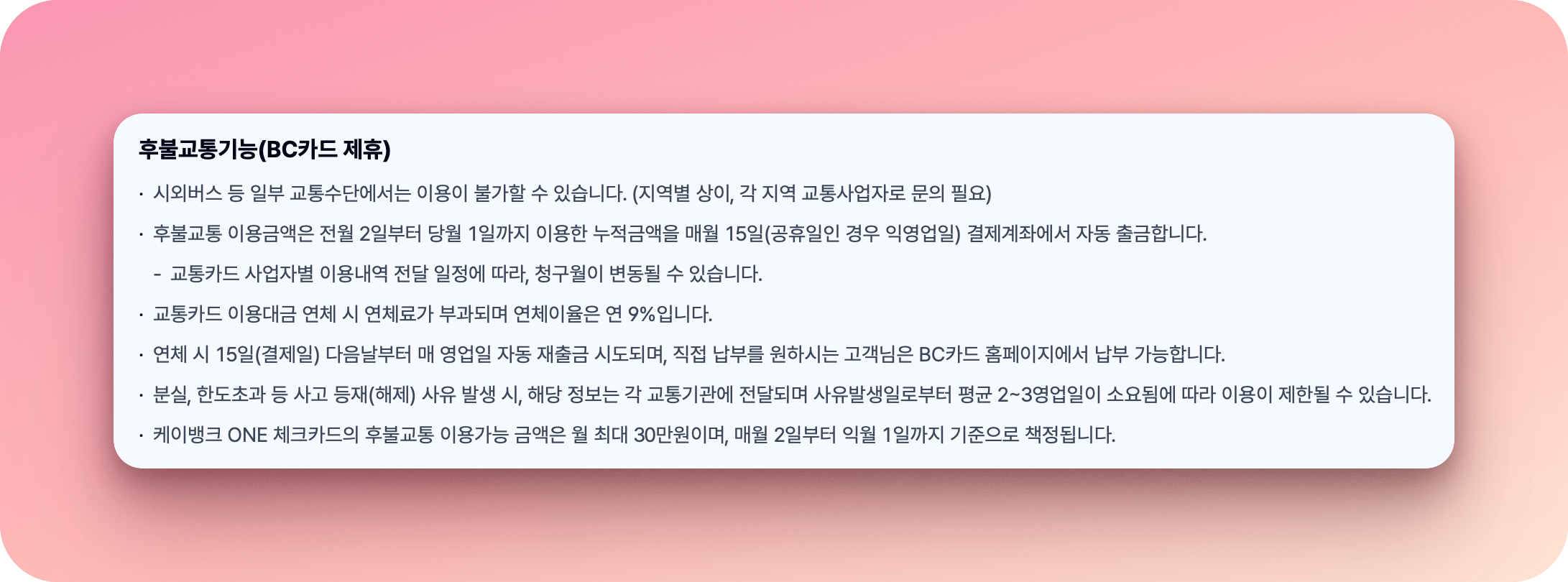 - 후불 교통 기능으로 사용하고 싶음(선불 방식 선호하지 않음)