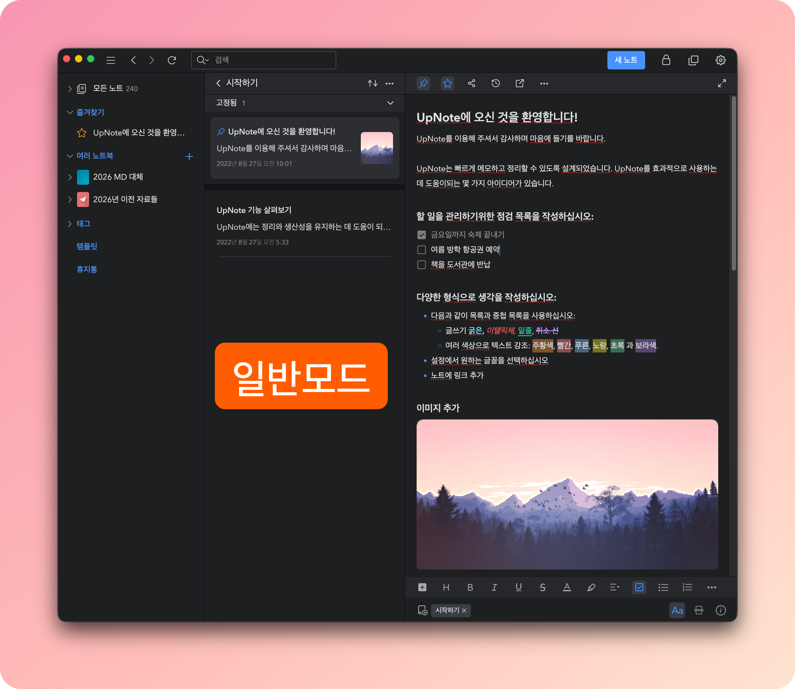 노트 프로그램 업노트(upnote) 글쓰기 프로그램으로 다시 사용 시작하다