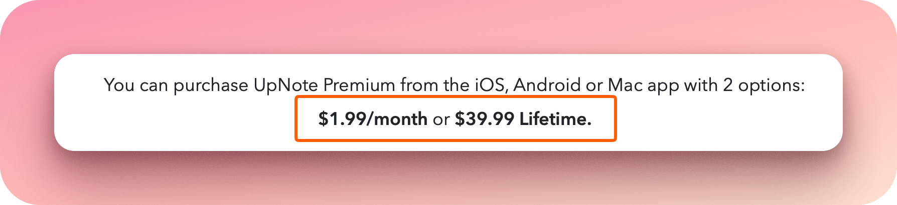 현재 업노트의 가격을 보게되면 구독제의 경우 월 $2 정도이고 라이프타임 1회 구매는 $40 정도다. 가격이 조금 오른 것 같다. 나 몇 년 전에 한국 돈 한화로 3만원에 구매했는데... 이렇게보면 결국 잘한 일이 되었다.