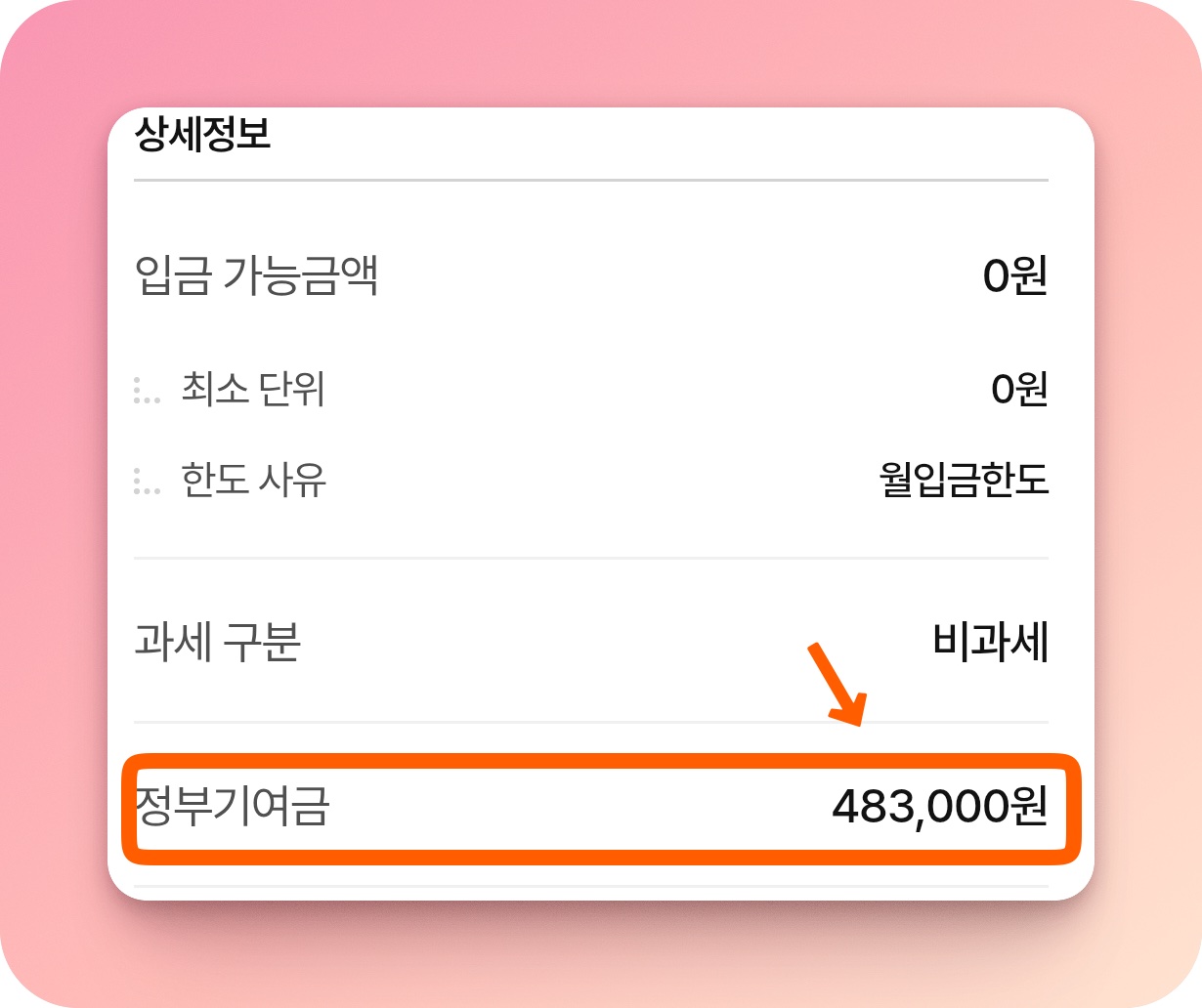 - 현재까지 정부기여금 483,000원 확정