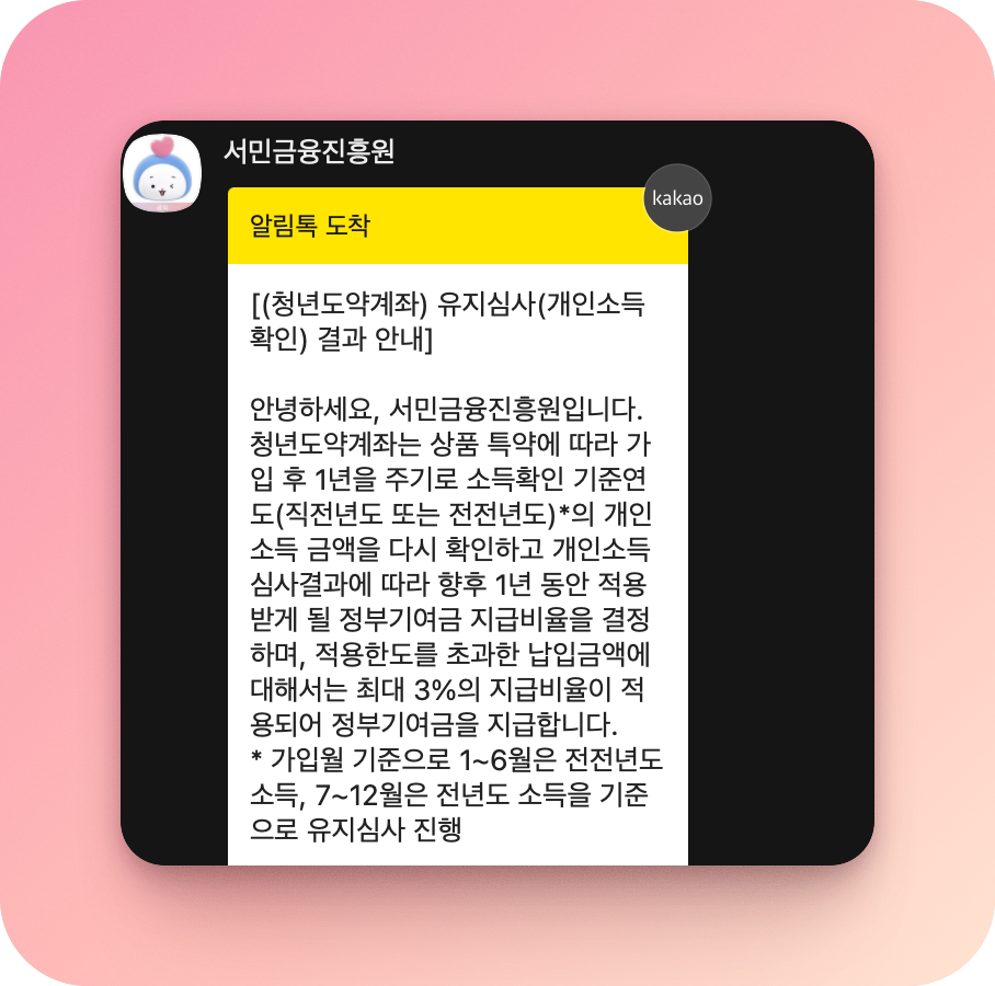 청년도약계좌 유지심사 결과 (개인소득 확인)