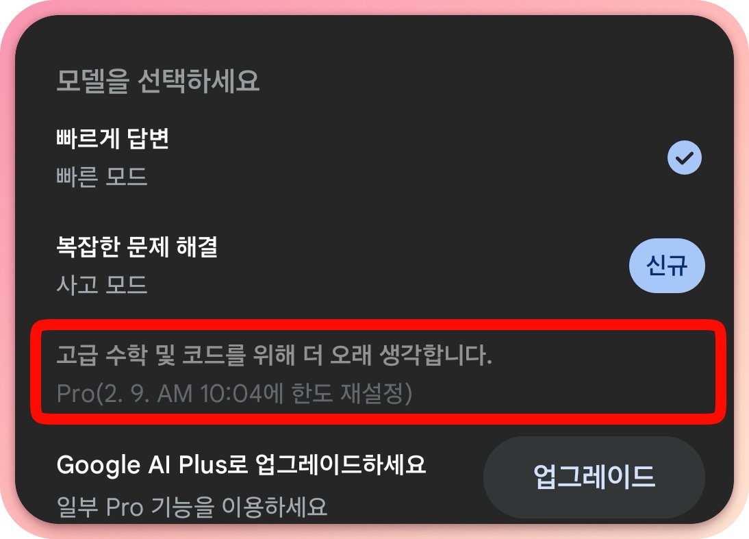 암튼 이렇게해서 결제 완료. 다시 구글 AI PLUS 요금제를 쓰게 되었다. 그리고 제미나이에서 PRO 모드를 다시 쓰면서 편안...