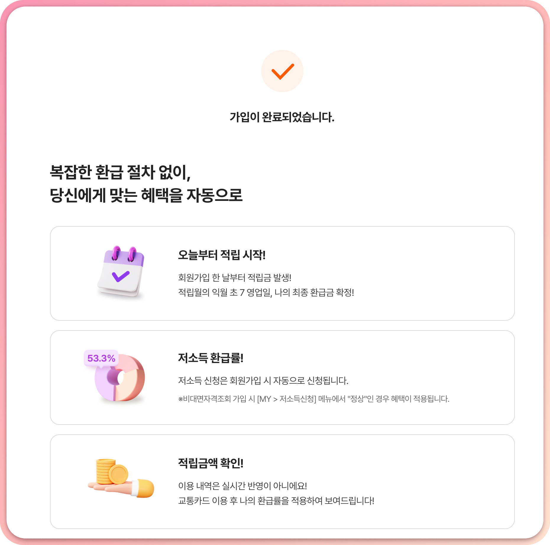 가입완료. 이제부터 K-패스 모두의카드 적립이 시작된다.
