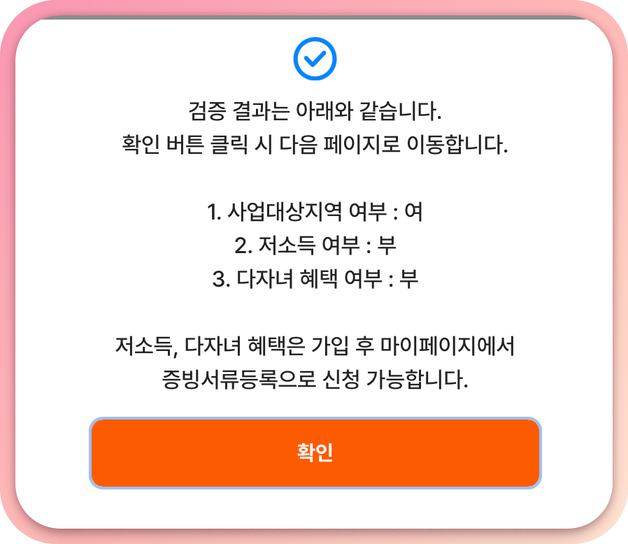 검증 완료하게되면 위처럼 대충 나온다. 맞는지 보면 된다. 다른건 몰라도 `사업대상지역 여부`는 반드시 `여`로 나와야한다.