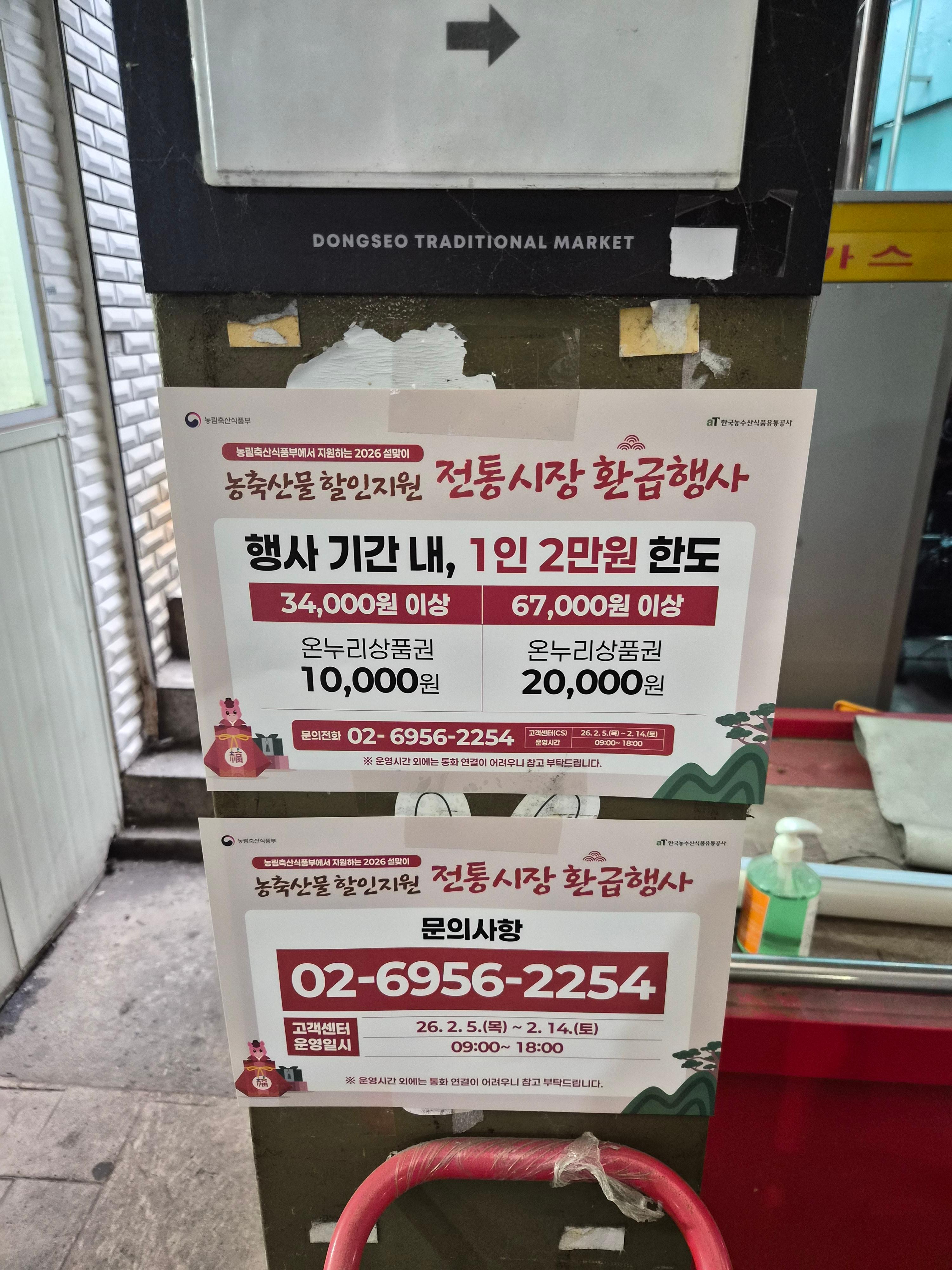 오늘 전통시장 지나가는데 이런 엑스배너가 설치되어 있길래 읽어보고 사진을 찍어보았다. 벌써 환급받으려고하는 줄이 시장 중간까지 이어지고 있었다. 정확한 명칭은 26년 설맞이 농축산물 할인지원 전통시장 환급행사라고 하며 예산이 소진되면 조기에 종료된다. 행사기간은 2월 10일부터였는데 마침 오늘이었다. 농림축산식품부에서 진행하는 정부 공식 행사이므로 전국 모두 공통인 것 같다.