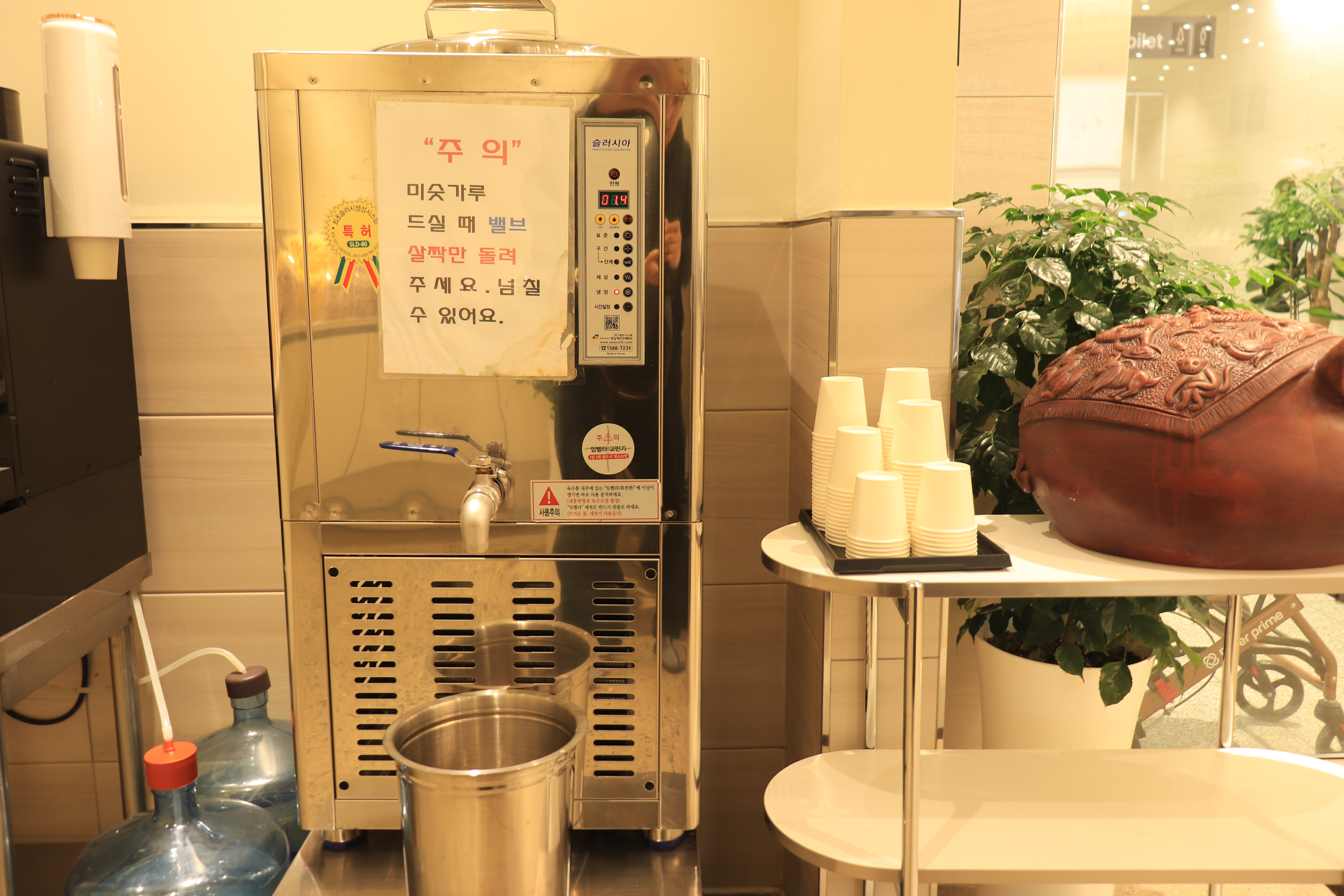 그리고 특이하게 미숫가루 기계가 있었습니다. 눈치 보지 말고 마음 껏 공짜로 마셔도 되는 방식입니다.