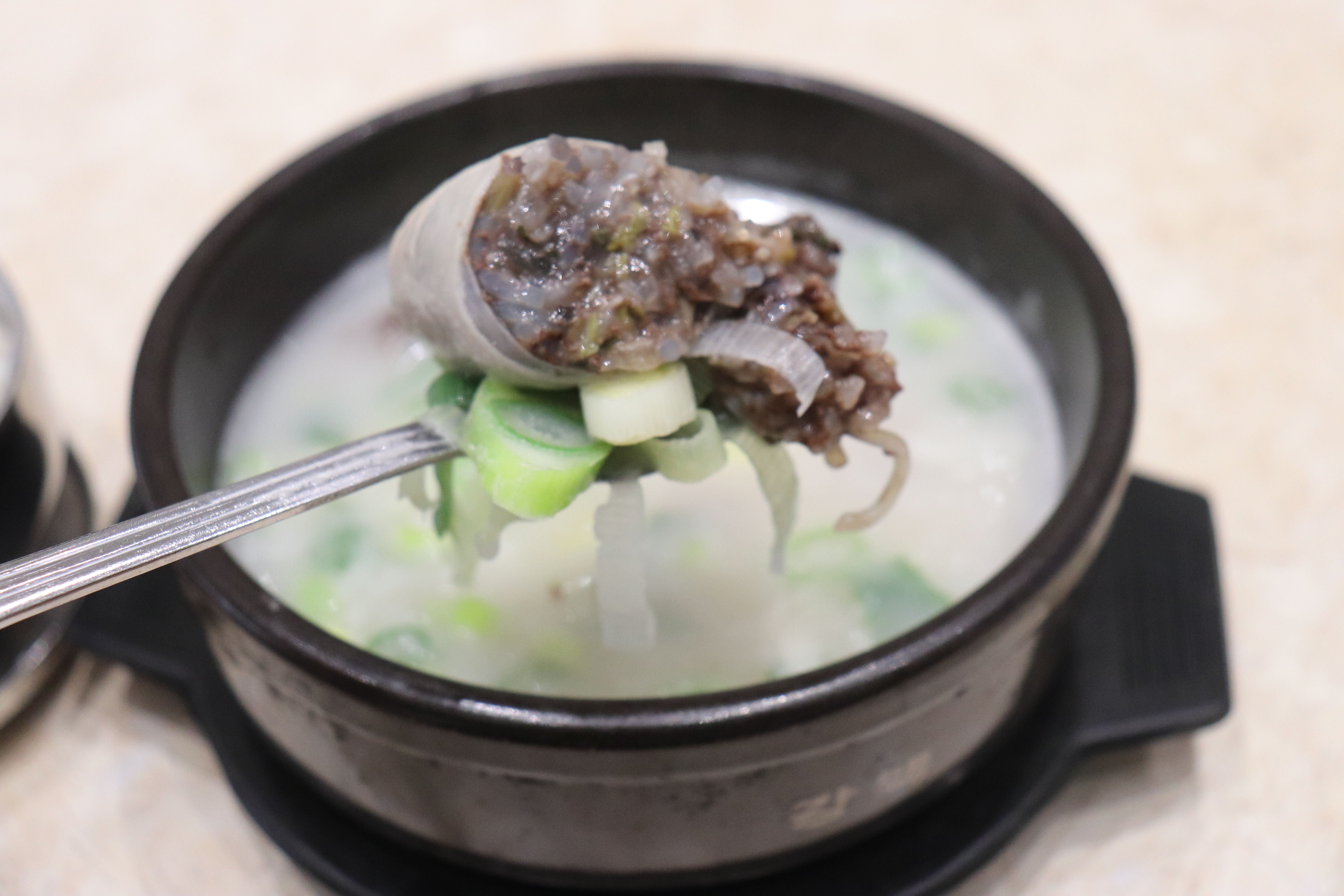 전체적으로 군더더기 없이 깔끔하면서도 맛이 있었어요. 국물이 맑고 깔끔했습니다. 진하고 걸쭉한 스타일보다는 구수하고 깔끔한 편이에요. 뽀얀 국물이 속을 편하게 해주는 느낌이랄까요. 여기에 소금 살짝 넣고 막창순대 몇 조각 넣어서 함께 먹으면 국밥 한 그릇이 금세 비워집니다. 가격도 부담스럽지 않은 수준이어서 만족스러웠어요. 혼밥으로 와도 부담 없이 한 끼 해결하기 좋았습니다.