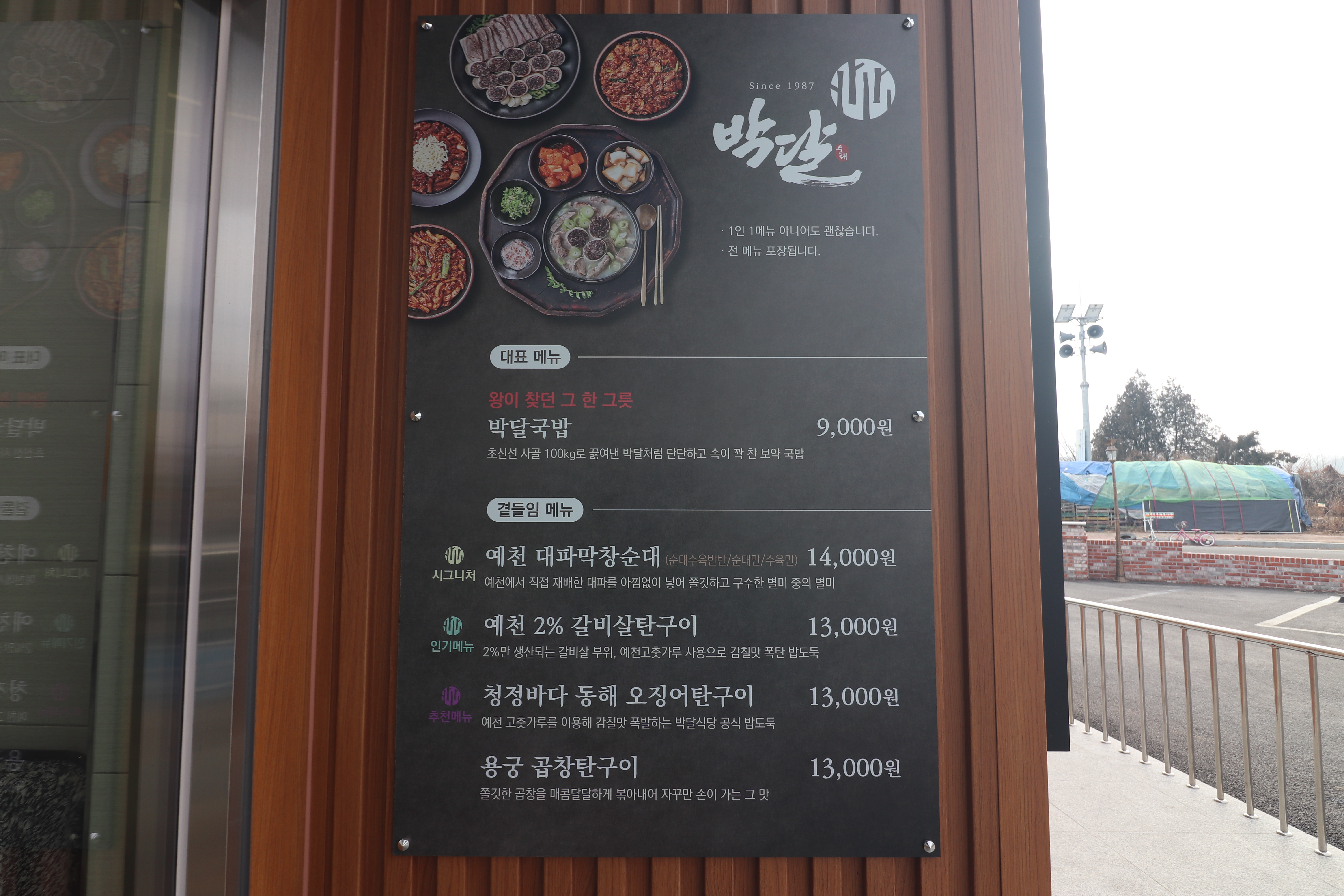 - 대표메뉴: 박달국밥, 막창순대, 오징어탄구이