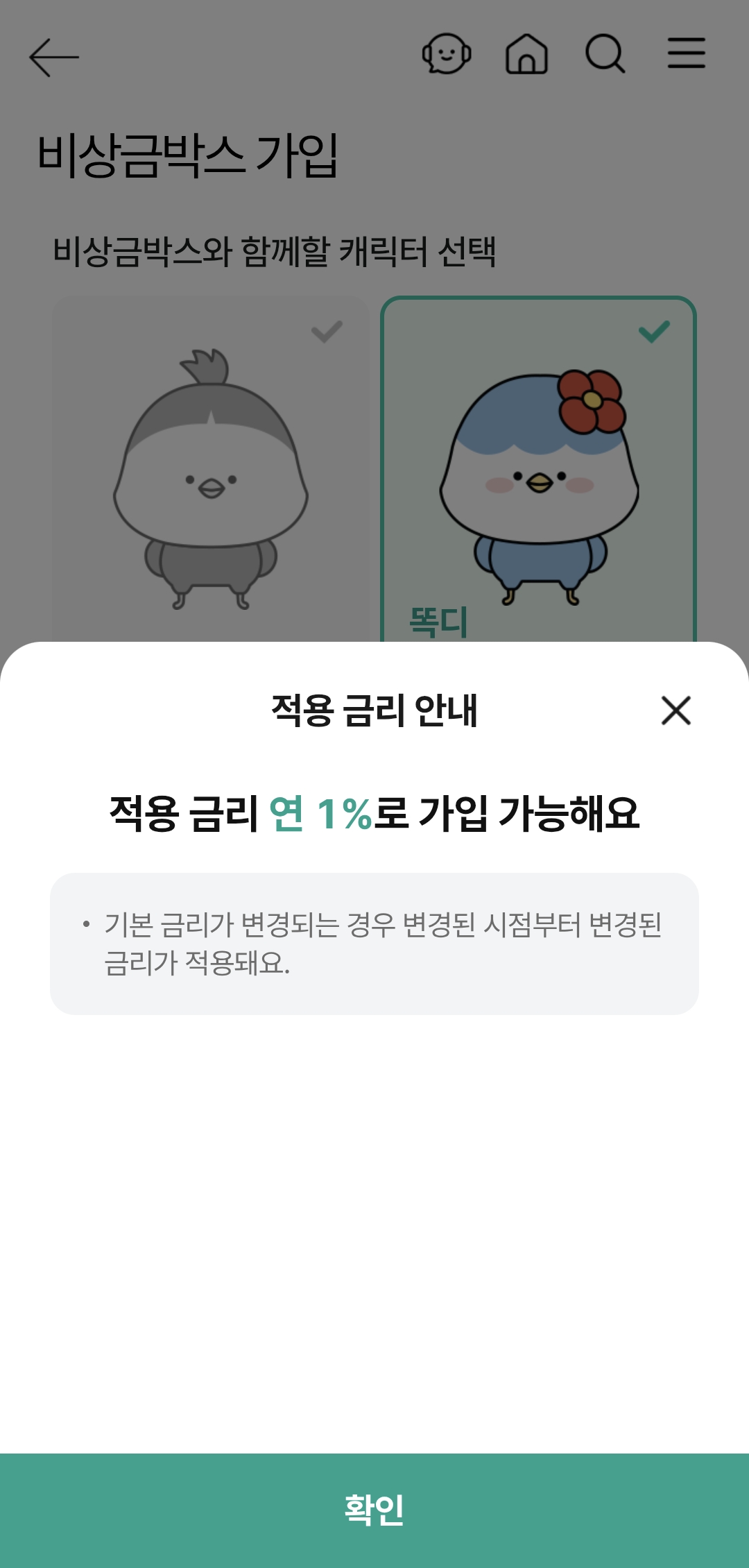 캐릭터를 고르는게 있는데 `단디`라는 친구가 있고 `똑디`라는 친구가 있다. 단디는 남자인것 같고 똑띠는 여자인것 같다. 똑띠가 머리에 꽃도 있고 예뻐서 똑디로 했다.ㅋㅋㅋ 금융상품은 단디하는것도 중요하고 똑띠하는것도 중요하다. 그리고 계좌별명 적어주고 가입 계속 진행한다.