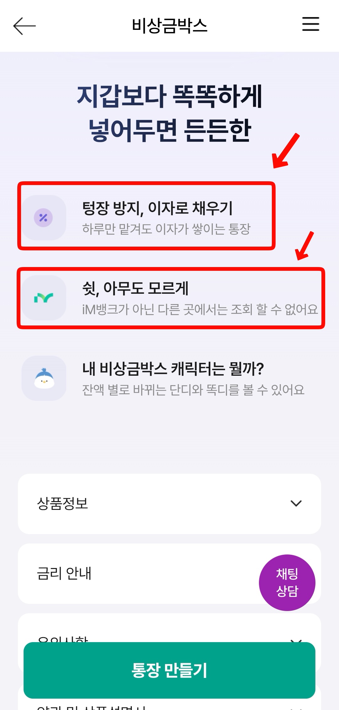 iM뱅크 비상금박스 계좌 개설하고 비상금 넣기(실제경험)