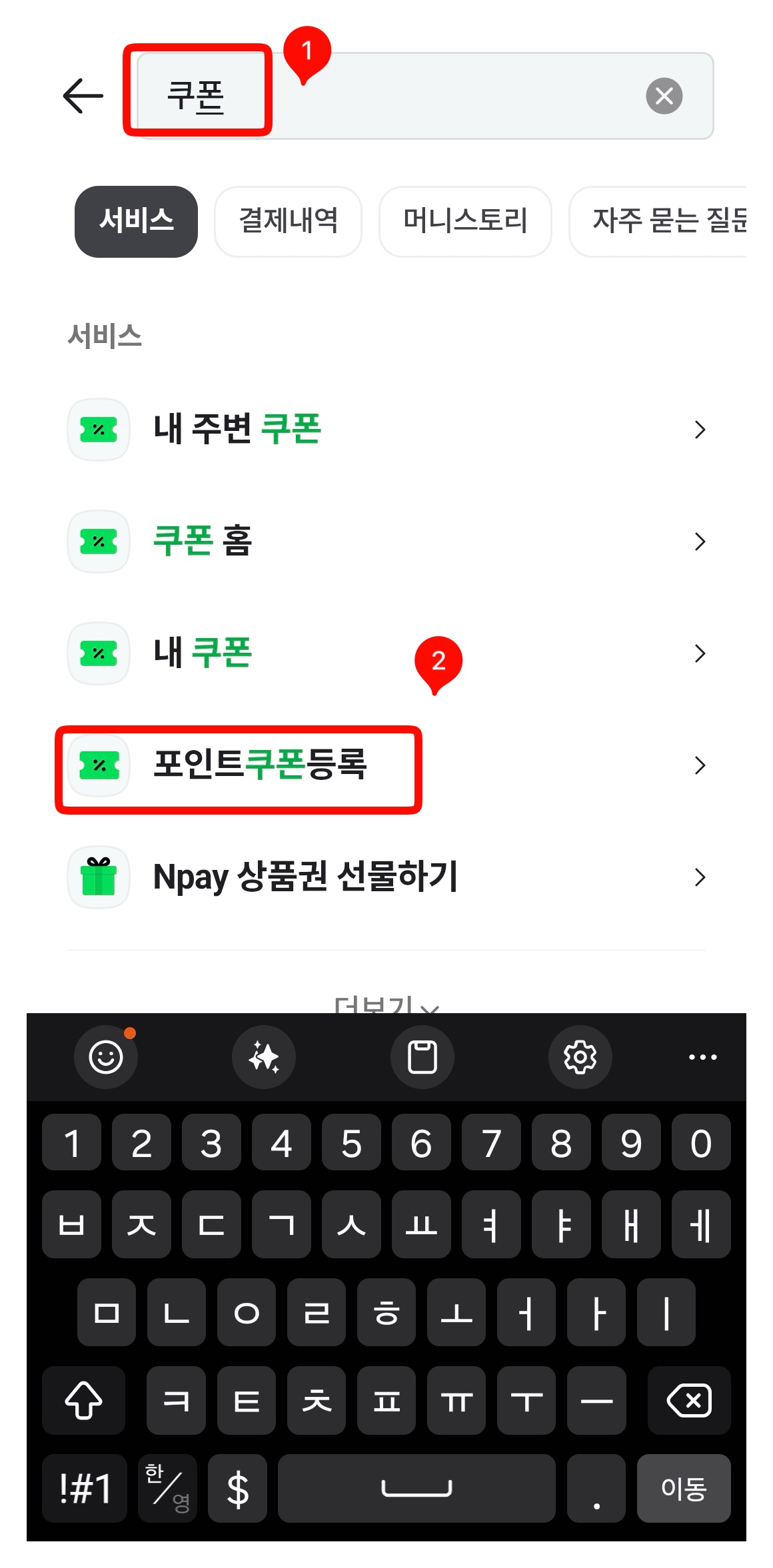 네이버페이 쿠폰 5000원도 곧바로 받을 수 있었다. 꿀 혜택이고 체리피킹 제대로 할 수 있는 항목 중 하나. 네이버페이 쿠폰 받으면 Npay 앱에서 `쿠폰`이라고 검색해서 `포인트쿠폰등록`에 들어가면 번호 입력하라고 하는데 여기에 붙여넣으면 된다. 5000원 충전 완료.