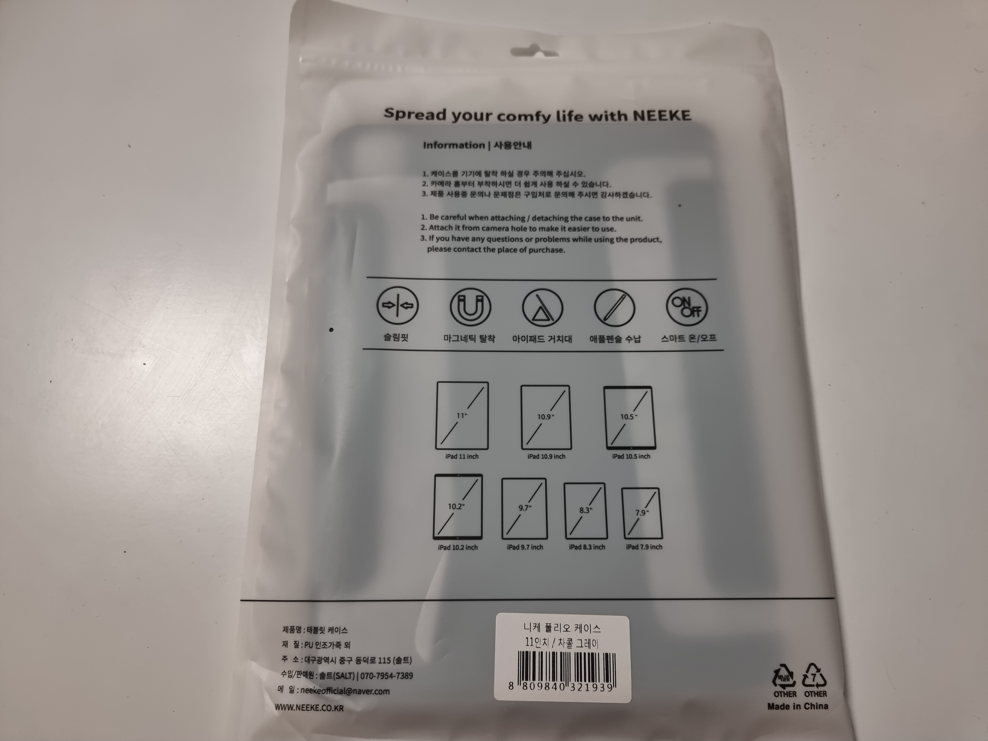 아이패드 거치대를 구매하고 다시 아이패드 케이스도 구매했습니다. 거치대는 집에서 쓸 용도라서 산 것인데... 그럼 케이스는 왜 샀냐하면, 케이스는 외부에 들고 나갈 때 쓰려고 샀어요. 저는 아이패드에 필름도 사용하지 않고 기타 다른것들 모두 사용하지 않고 있어서... 보통 평소에는 그냥 가방에 넣고 다니는데 아무래도 조금의 보호는 필요해서 아이패드 케이스를 구매하게 됐습니다.
