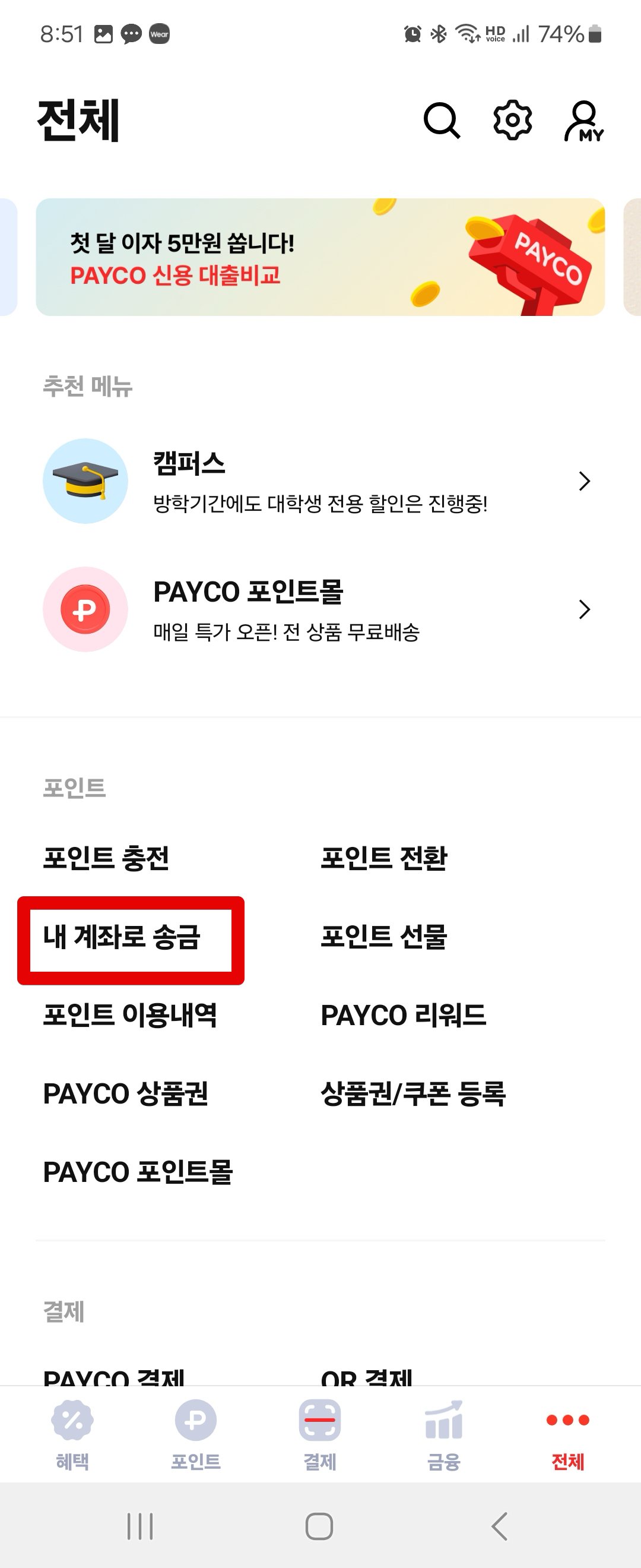 페이코 포인트 현금화로 포인트 금액 계좌 송금하기