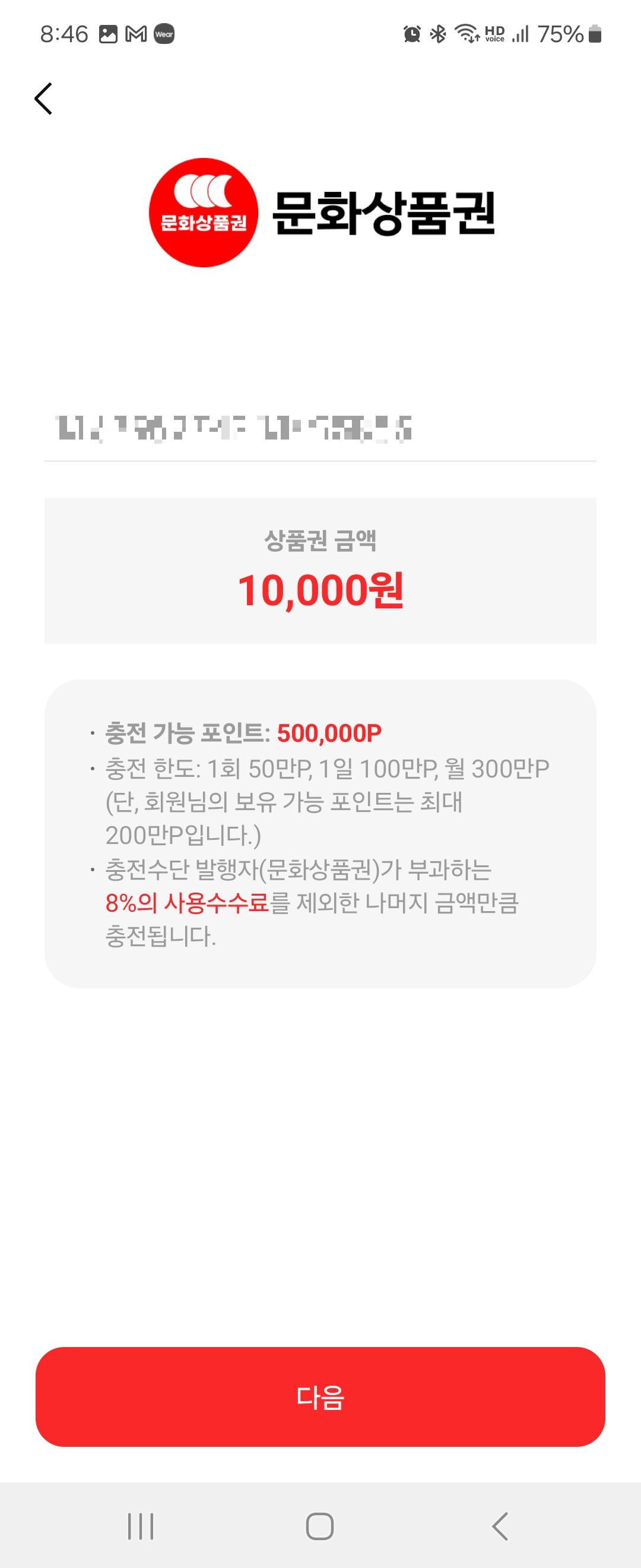 하지만 문화상품권 금액을 페이코로 전환하게 되면 8%의 수수료가 있습니다.(10,000원당 800원)