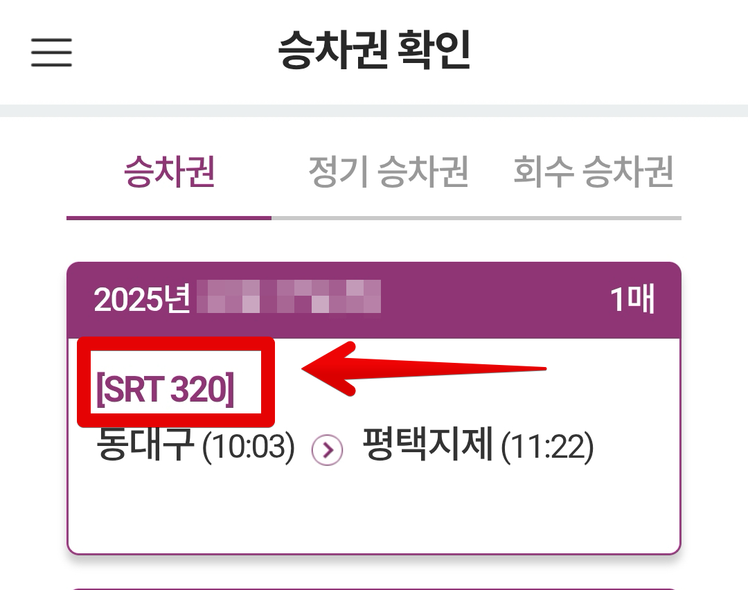 srt 앱에서 승차권을 보게 되면 SRT 320 처럼 번호가 있습니다.