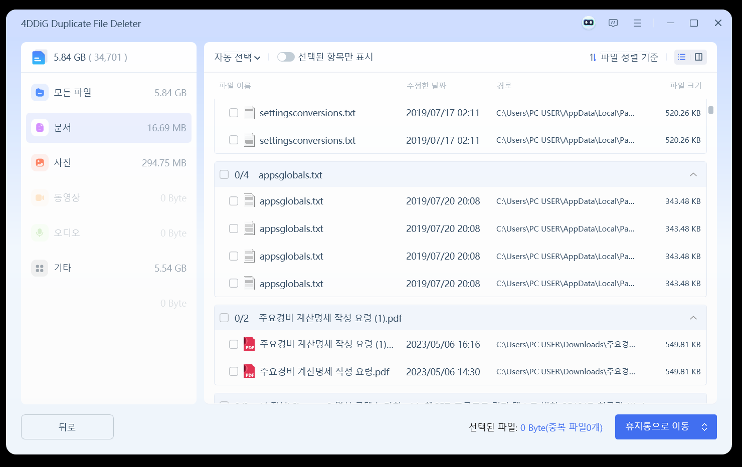 컴퓨터 용량 늘리기, 4DDiG 중복 파일 삭제기로 1분 만에 해결하는 방법 (윈도우 용량 정리)