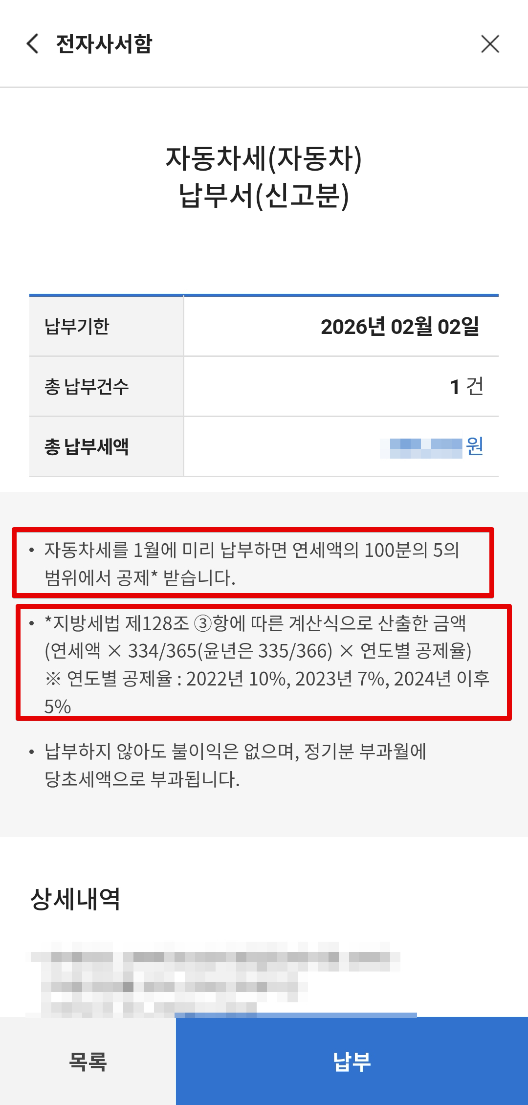 2026년 자동차세 연납할인 4.57% 공제받고 납부 완료 (실제 경험)